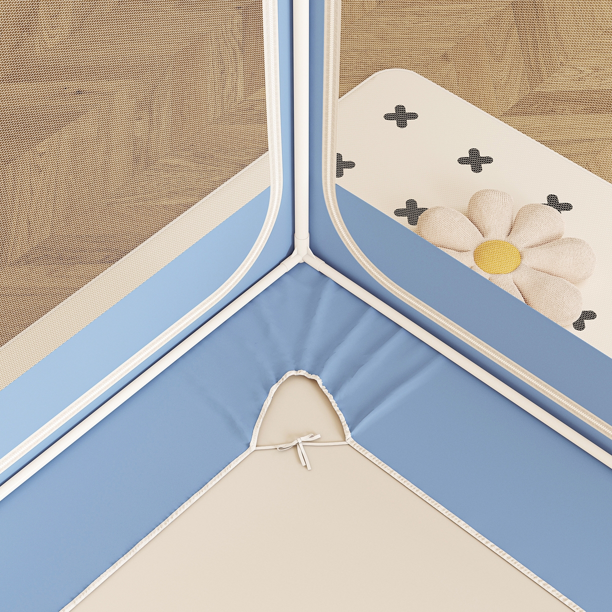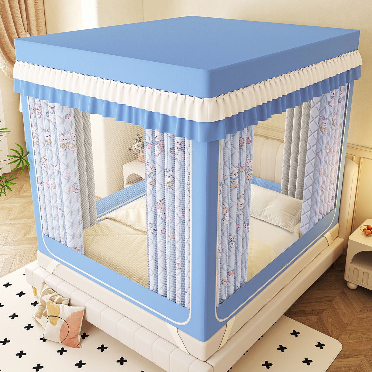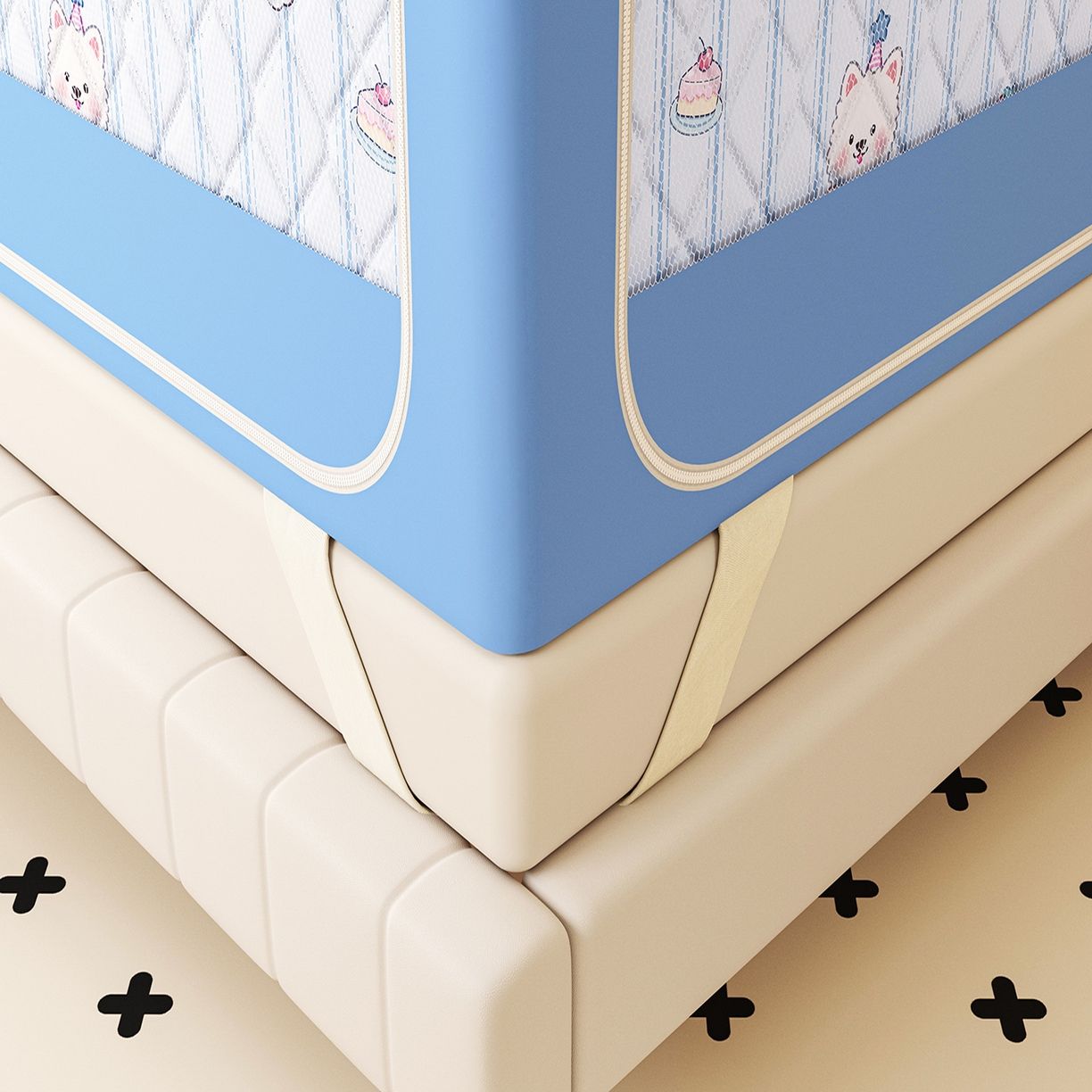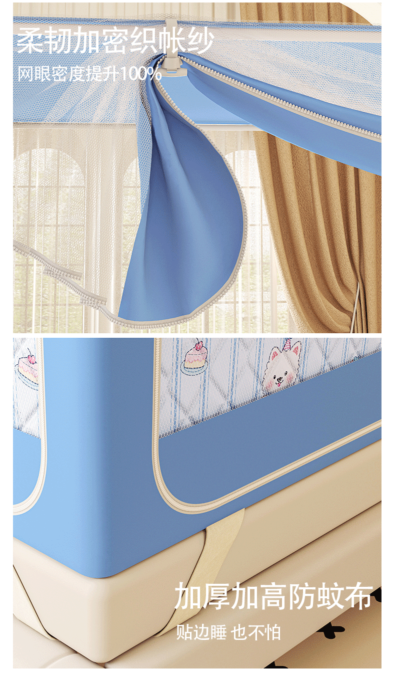 2025新款2502款美人狗烫画围栏级防摔外穿杆坐床蚊帐-场景二