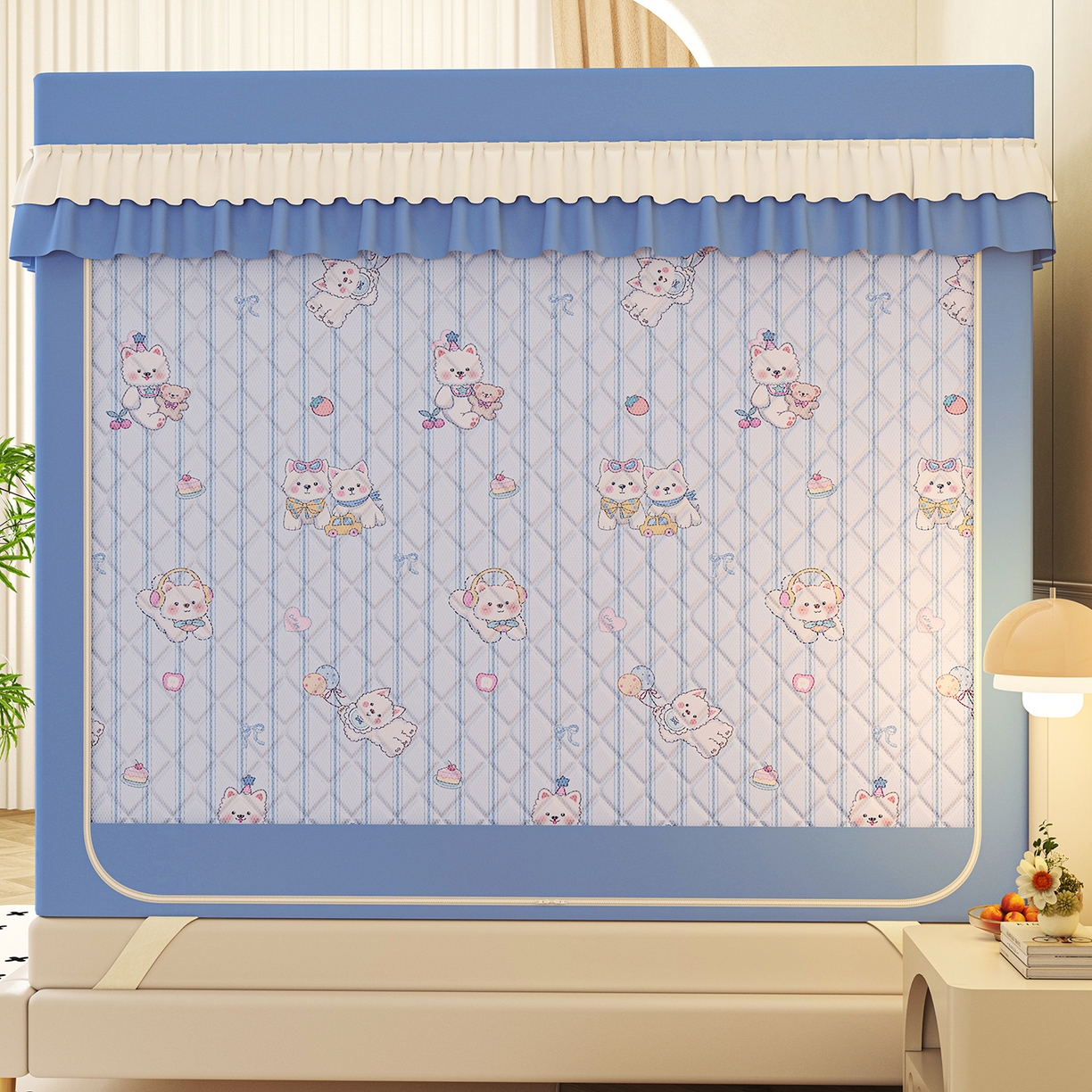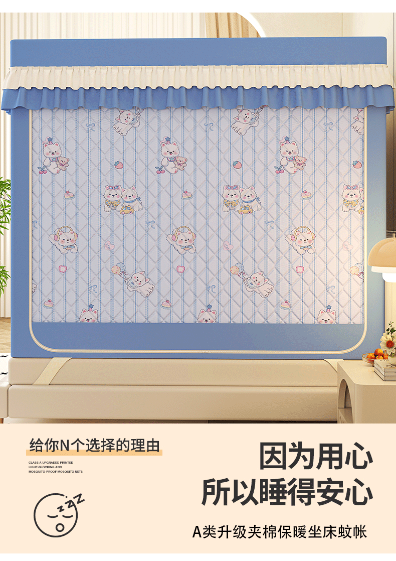 迪凡保罗蚊帐 2025新款2603冬季保暖夹棉印花遮光帘蚊帐全底回底双排储物袋 小狗乐园