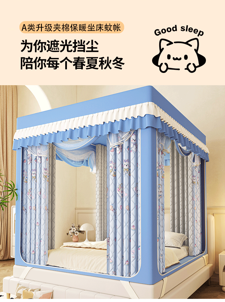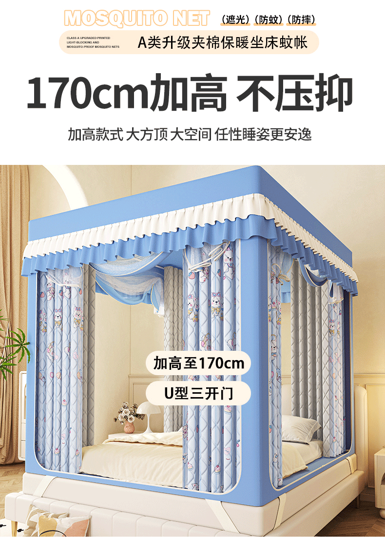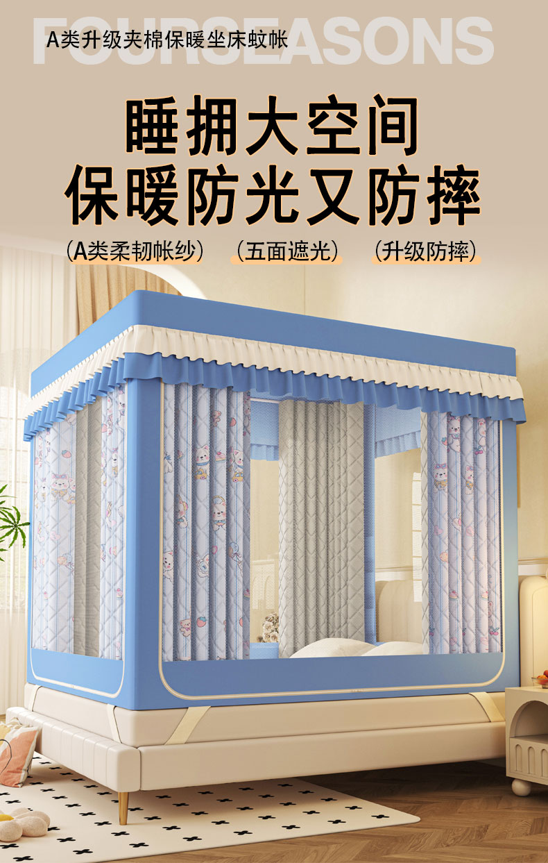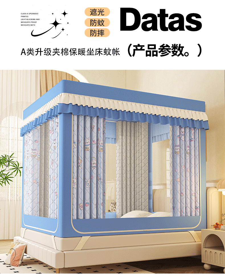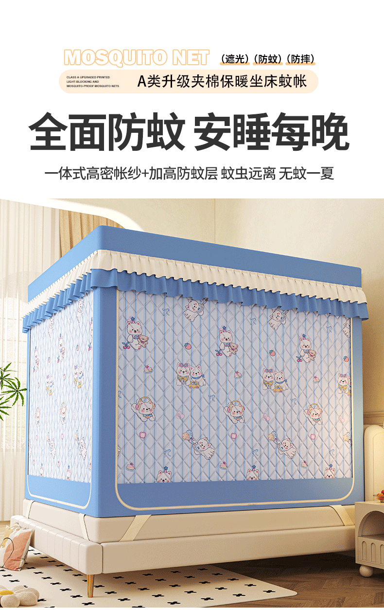 2025新款2507印花夹棉遮光保暖坐床蚊帐