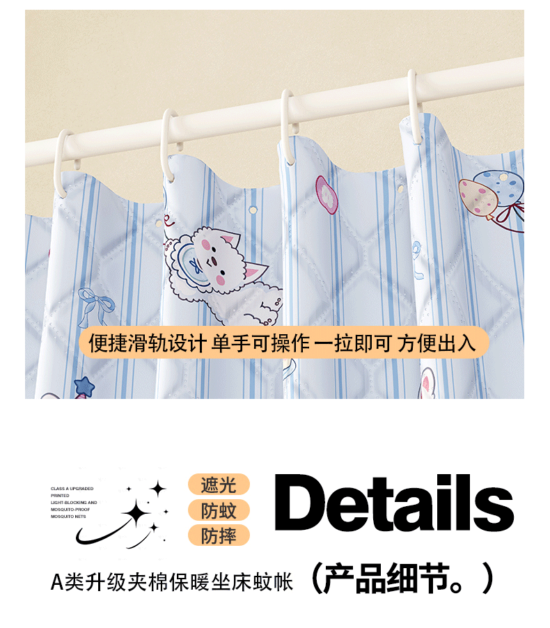 2025新款 2503专版印花遮光帘防摔坐床蚊帐