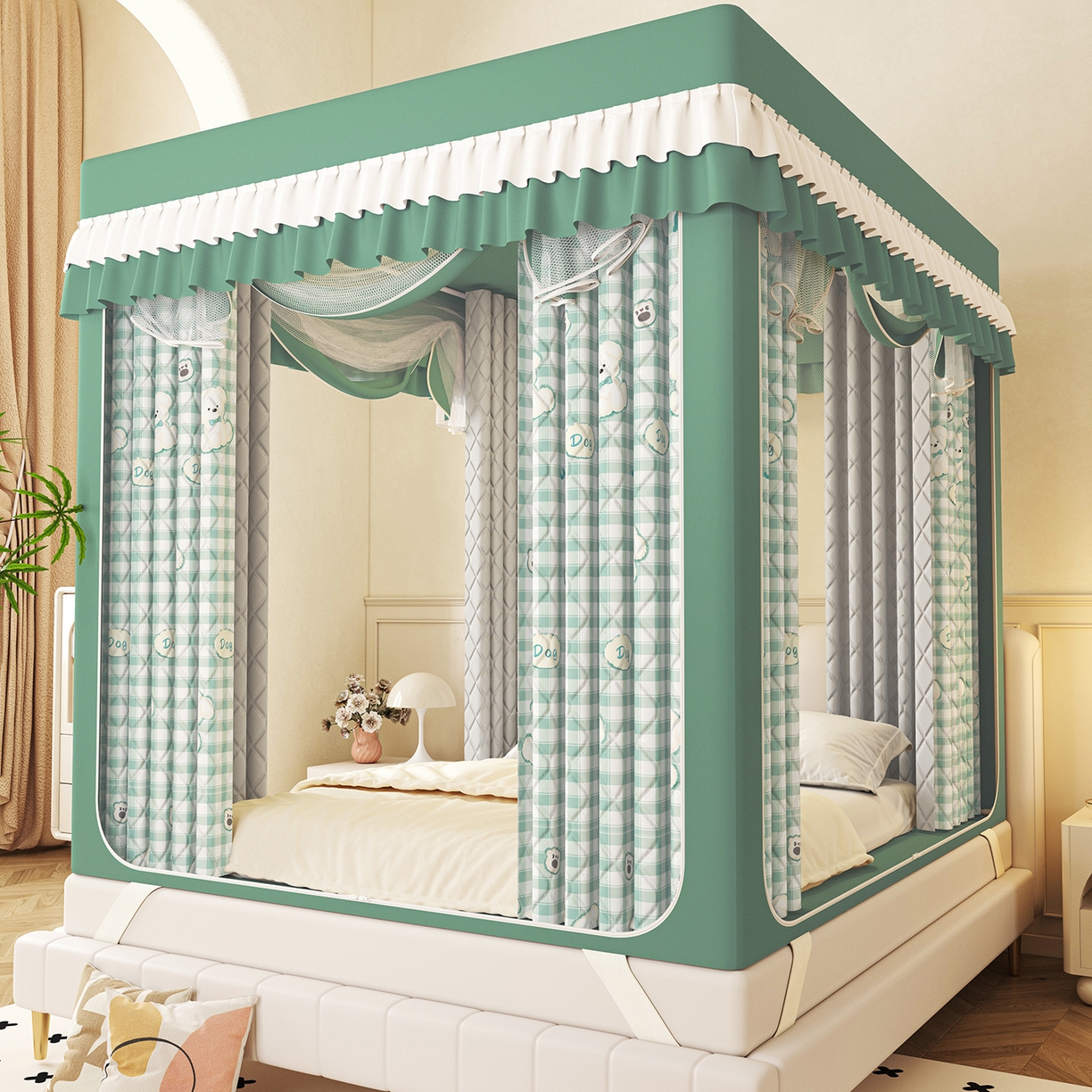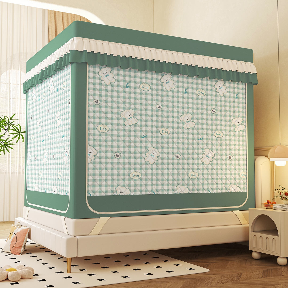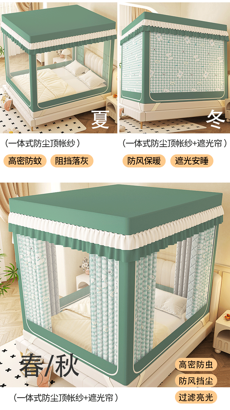 2025新款2604冬季保暖夹棉纯色遮光帘蚊帐全底回底双排储物袋