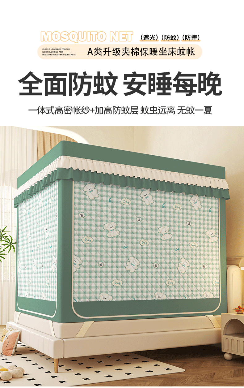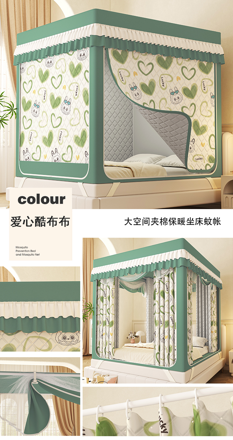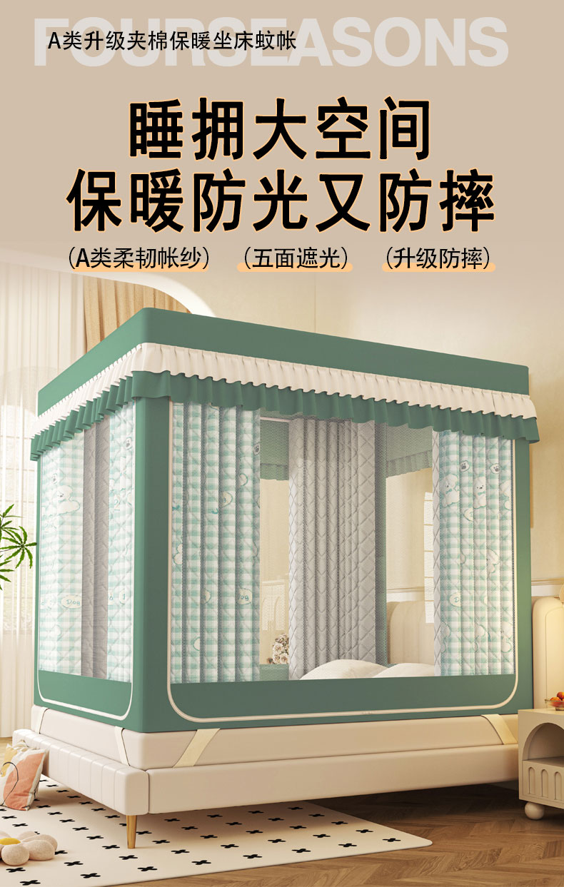 2025新款2507印花夹棉遮光保暖坐床蚊帐