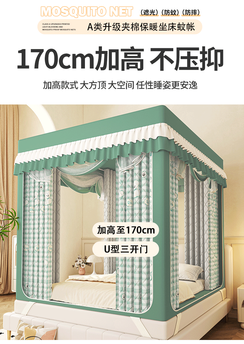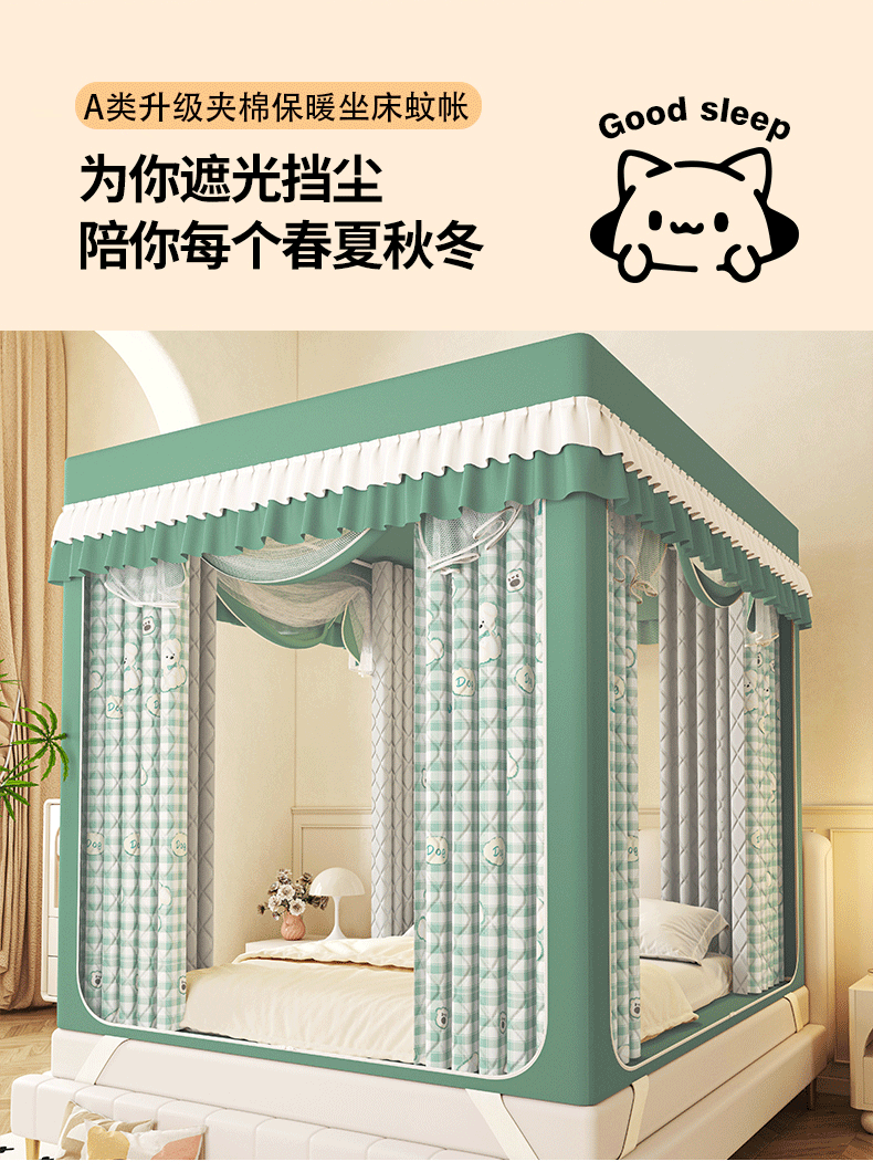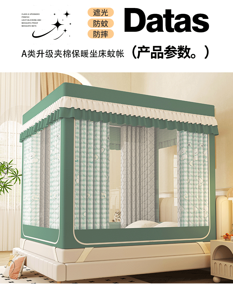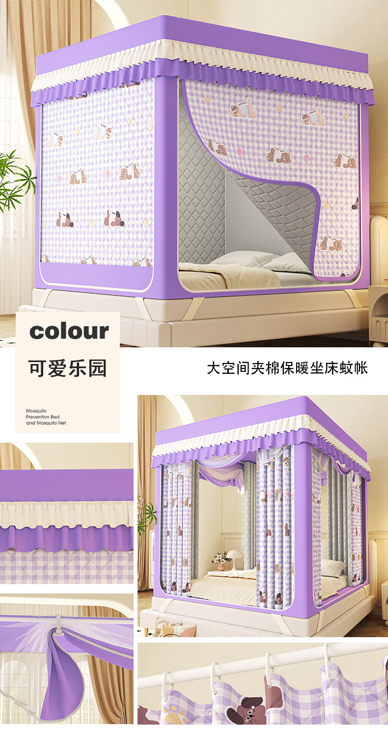 2025新款2507印花夹棉遮光保暖坐床蚊帐