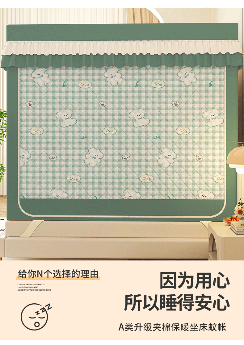迪凡保罗蚊帐 2025新款2603冬季保暖夹棉印花遮光帘蚊帐全底回底双排储物袋 幸运狗
