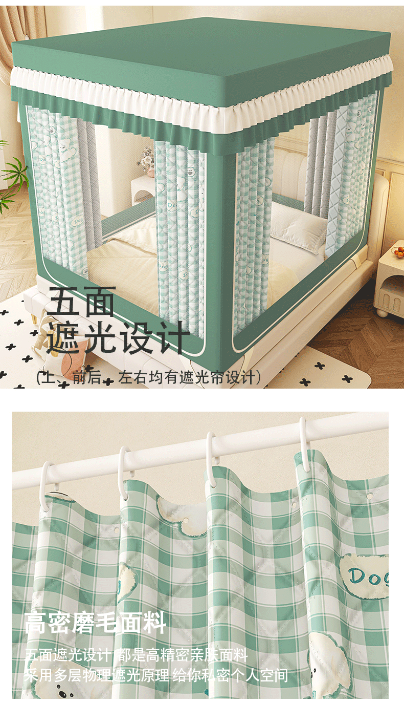 2024新款2415纳米环保加厚强遮光小清新学生蚊帐(自带靠墙帘)
