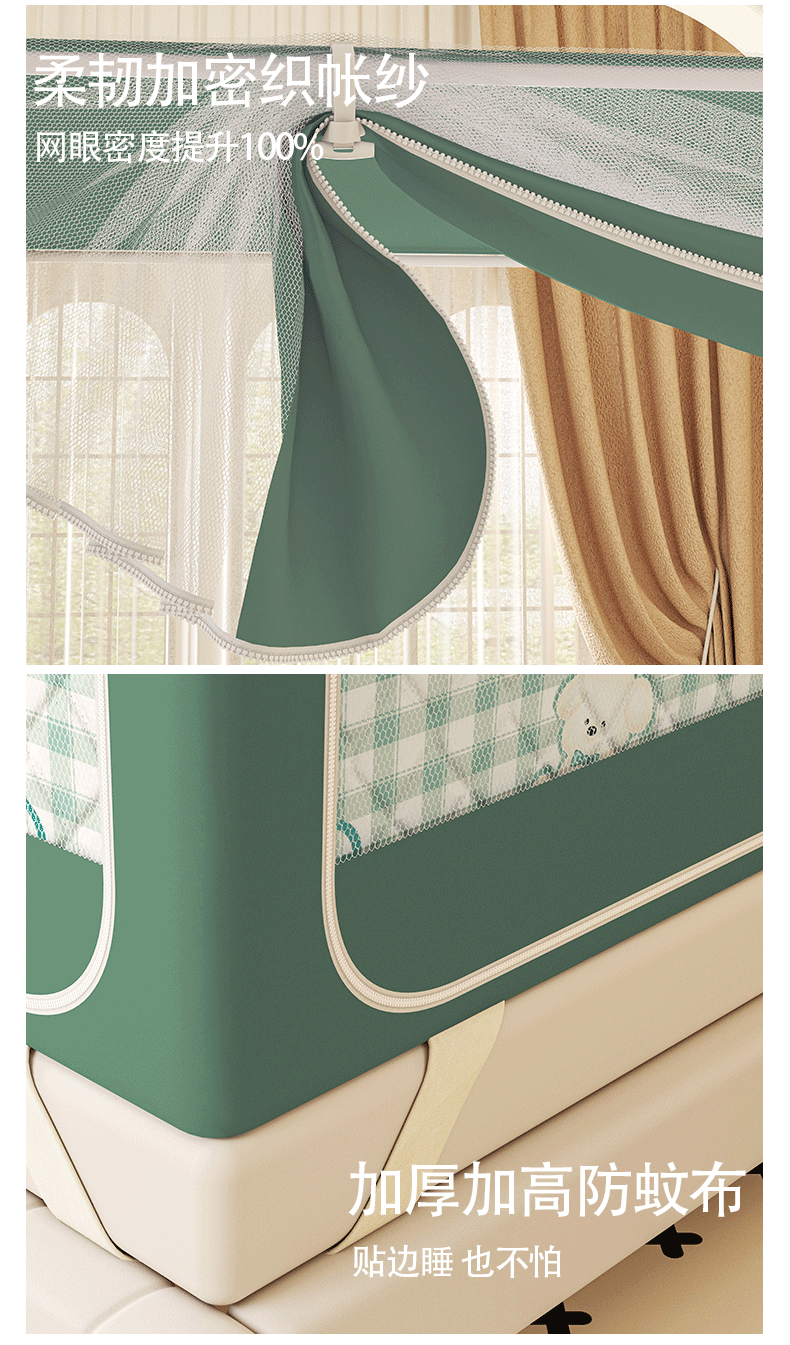 2025新款2502款美人狗烫画围栏级防摔外穿杆坐床蚊帐-场景二