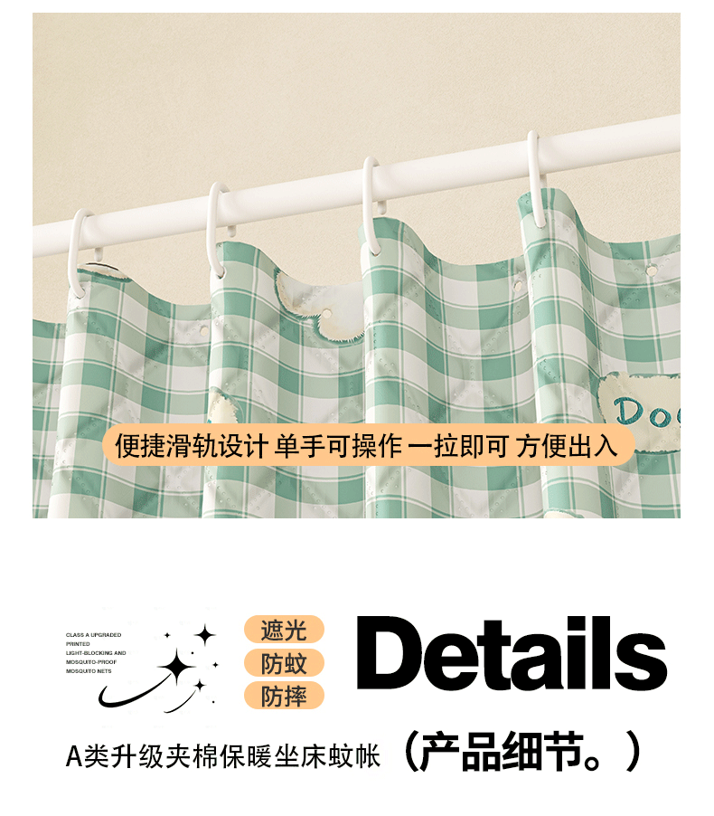 2025新款2405大熊猫纯色遮光帘坐床蚊帐系列
