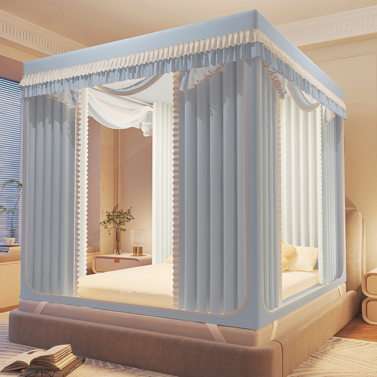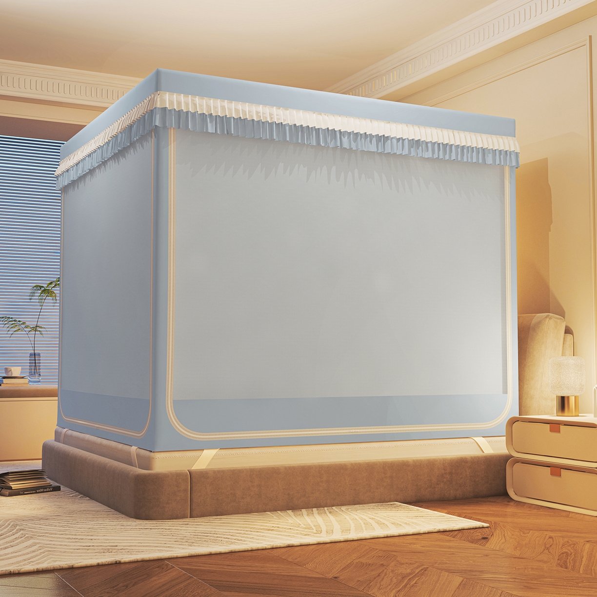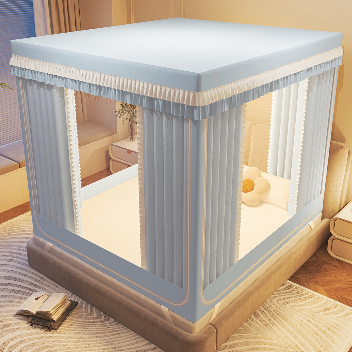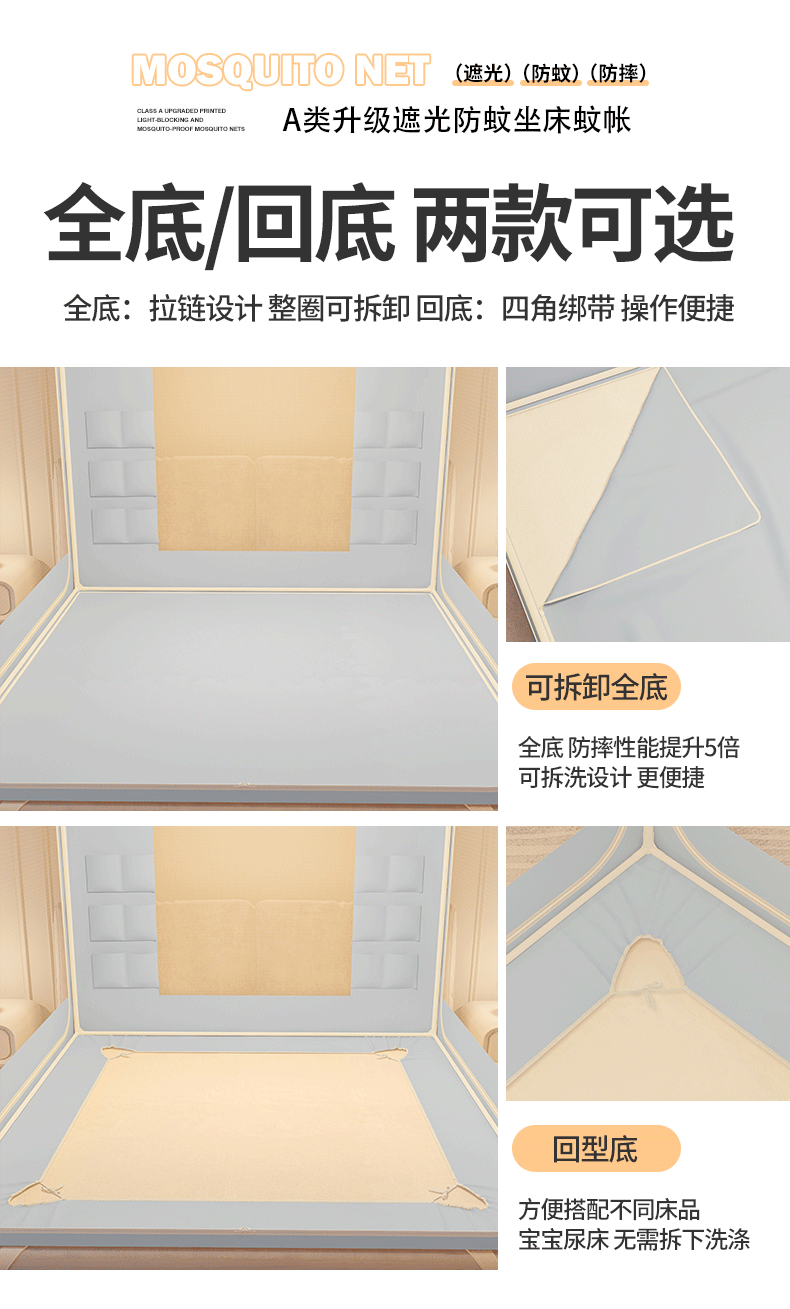 2025新款2602四季款纯色遮光帘坐床蚊帐全底回底双排储物袋
