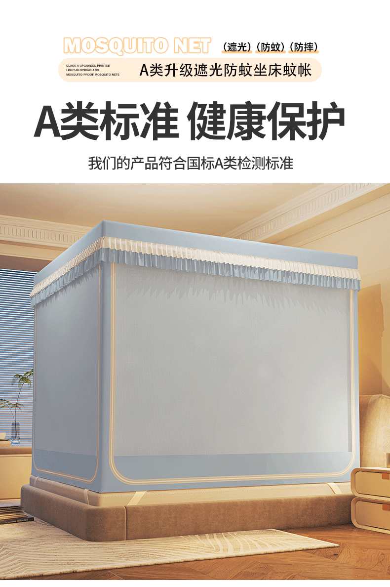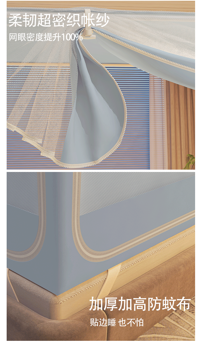 2025新款2515款凉感丝双层纱双轨铝合金落地导轨蚊帐