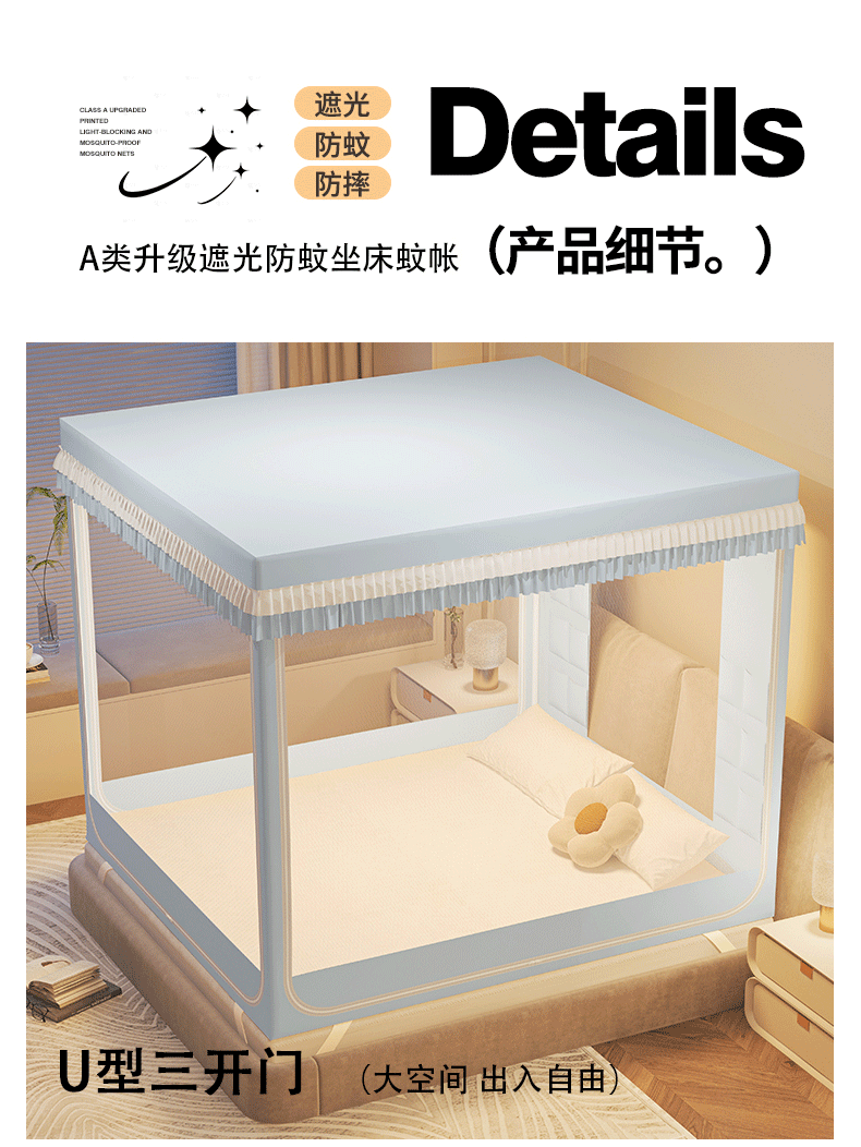 2023新款2318多开门涂银强遮光三明治学生蚊帐