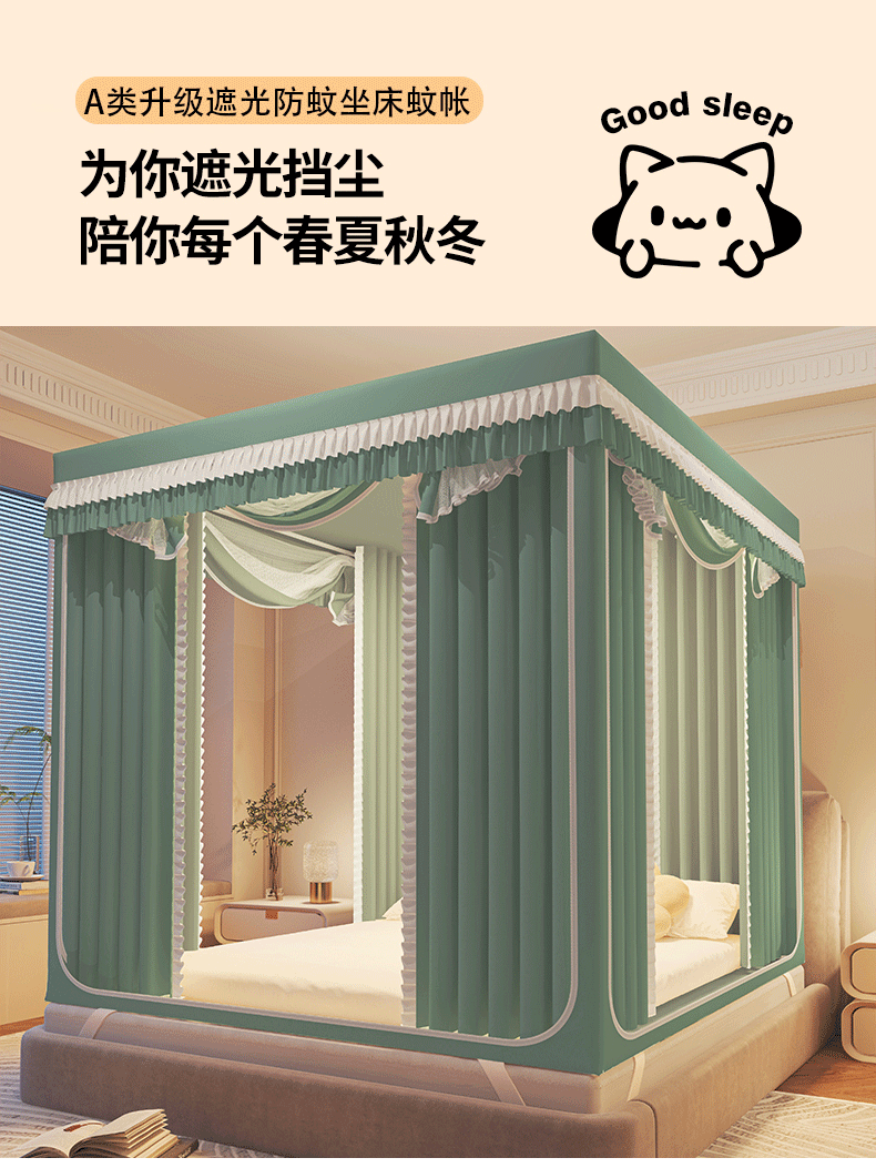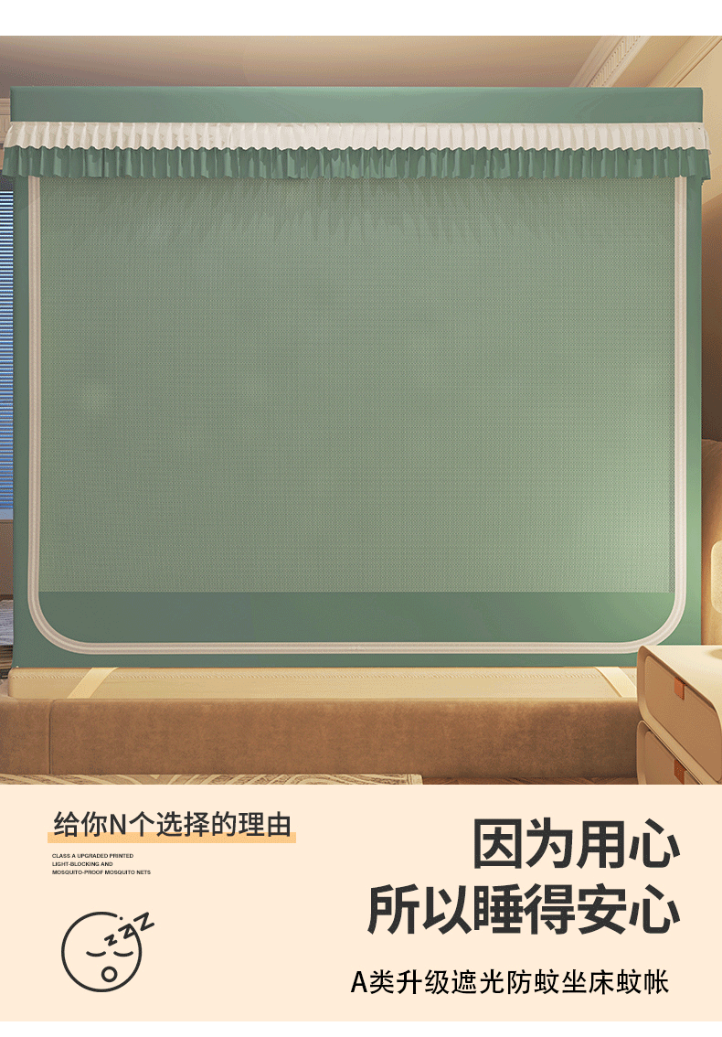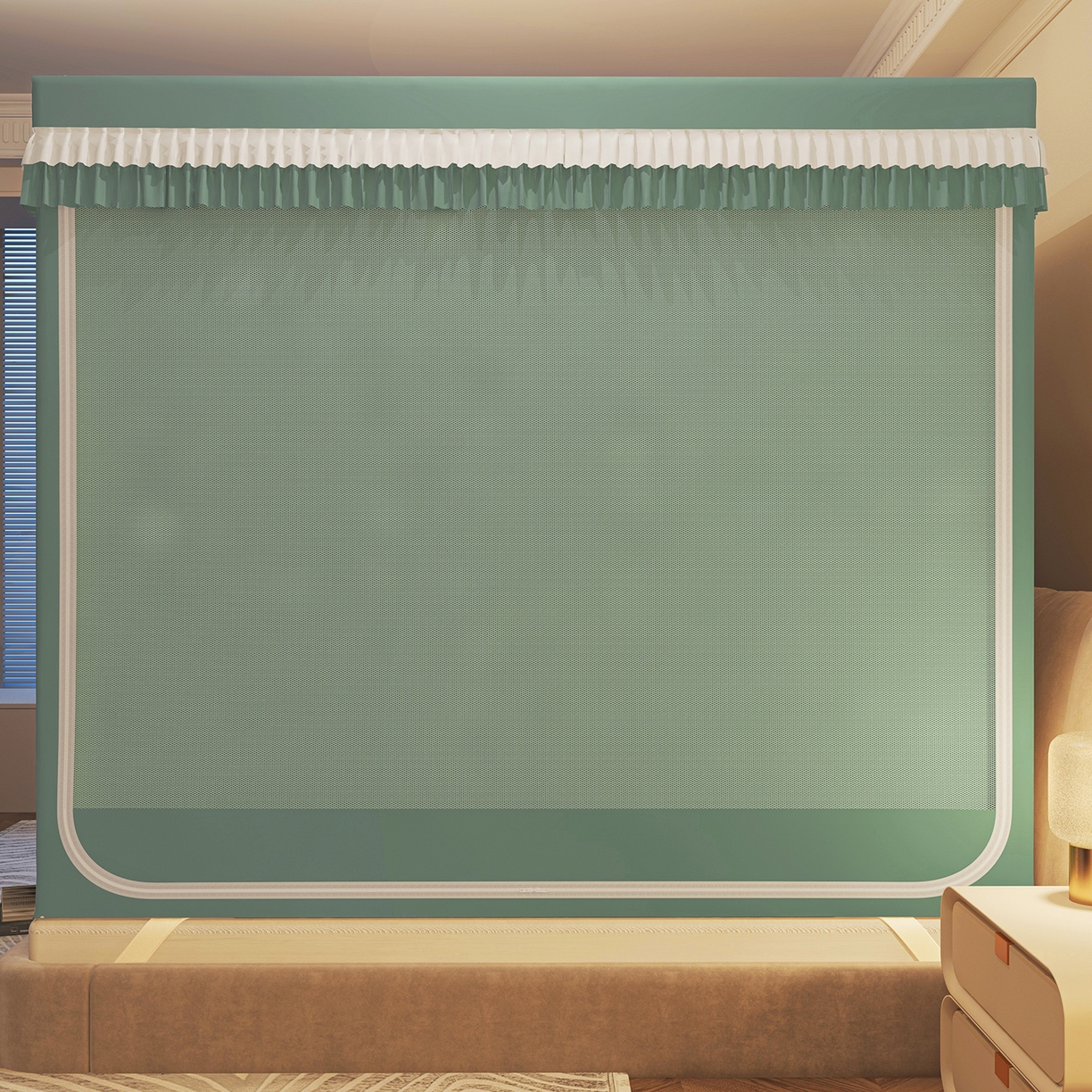 > 迪凡保罗蚊帐 2025新款2602四季款纯色遮光帘坐床蚊帐全底回底双排储物袋 太湖绿-带床帘