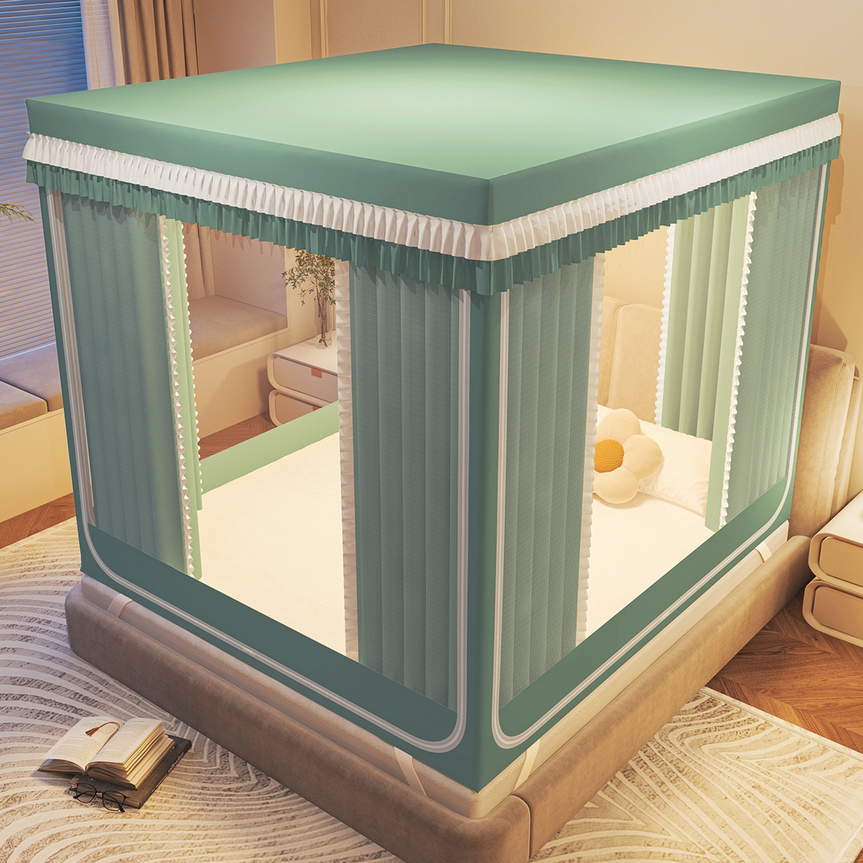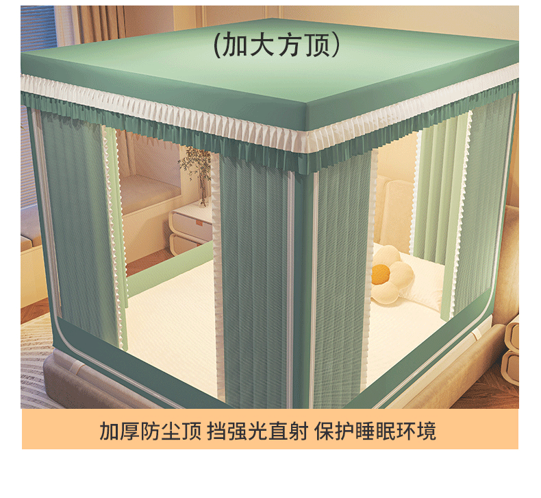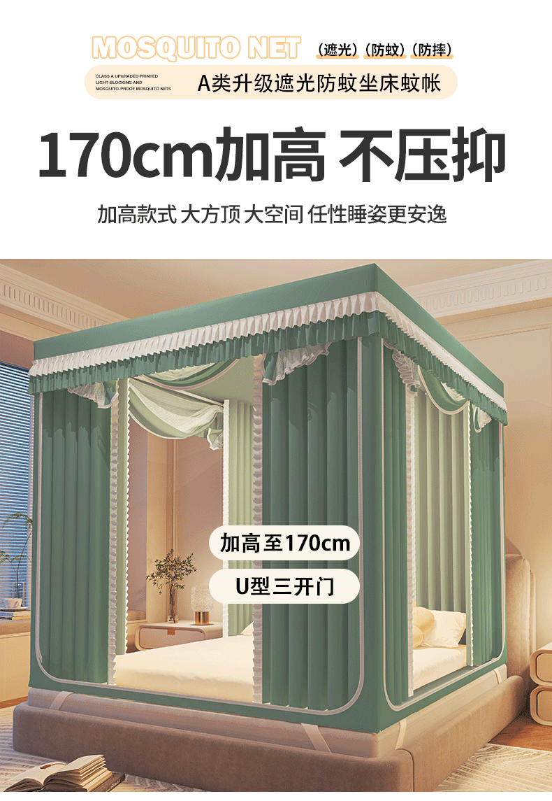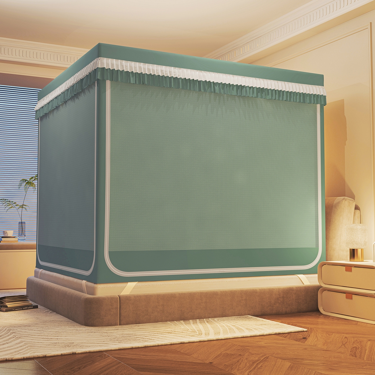 > 迪凡保罗蚊帐 2025新款2602四季款纯色遮光帘坐床蚊帐全底回底双排储物袋 太湖绿-带床帘