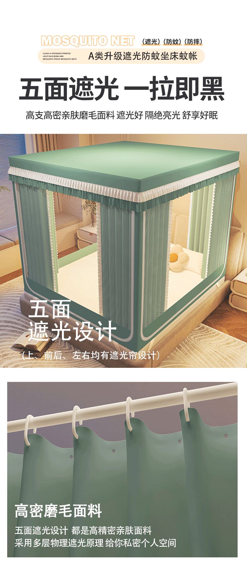 2025新款2518款纯色植绒环保五面强遮光学生蚊帐