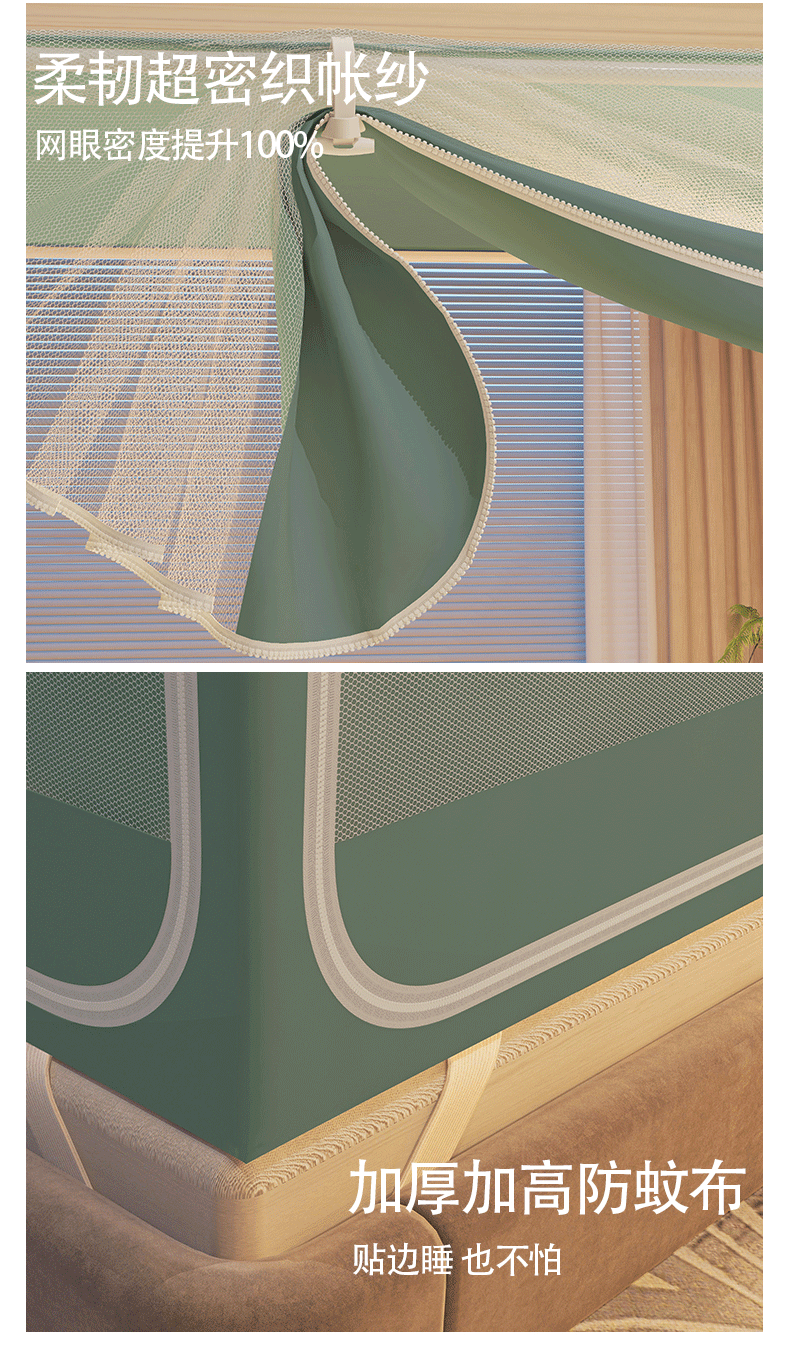 2025新款2515款凉感丝双层纱双轨铝合金落地导轨蚊帐