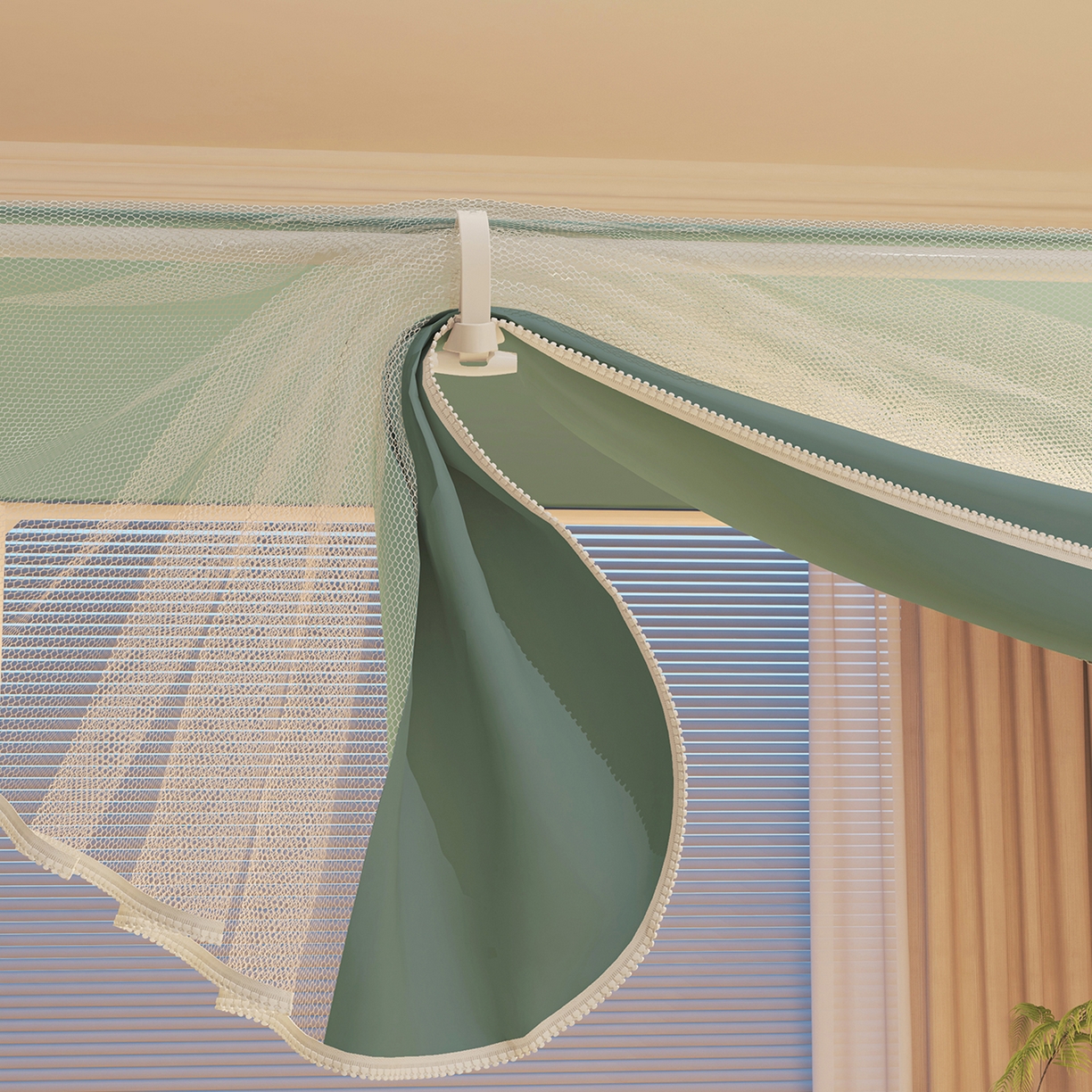 2025新款2519款纯色植绒环保五面强遮光双轨铝合金学生导轨蚊帐