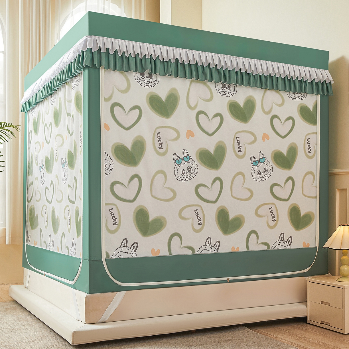 > 迪凡保罗蚊帐 2025新款2601四季款印花遮光帘坐床蚊帐全底回底双排储物袋 爱心酷布布-带床帘