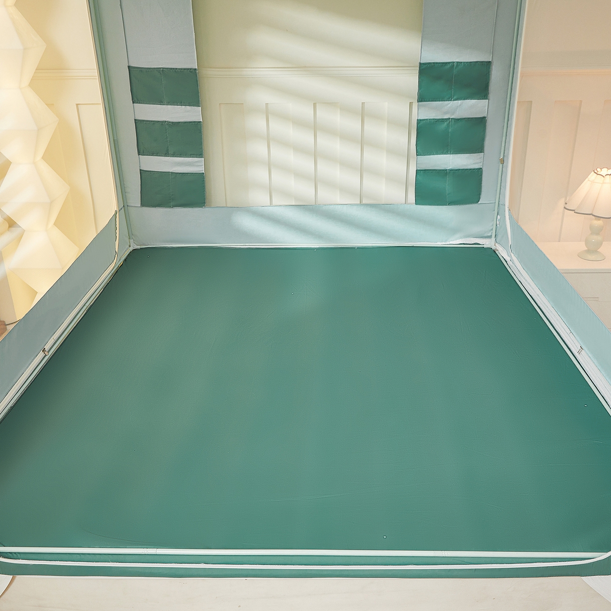 2025新款2602四季款纯色遮光帘坐床蚊帐全底回底双排储物袋