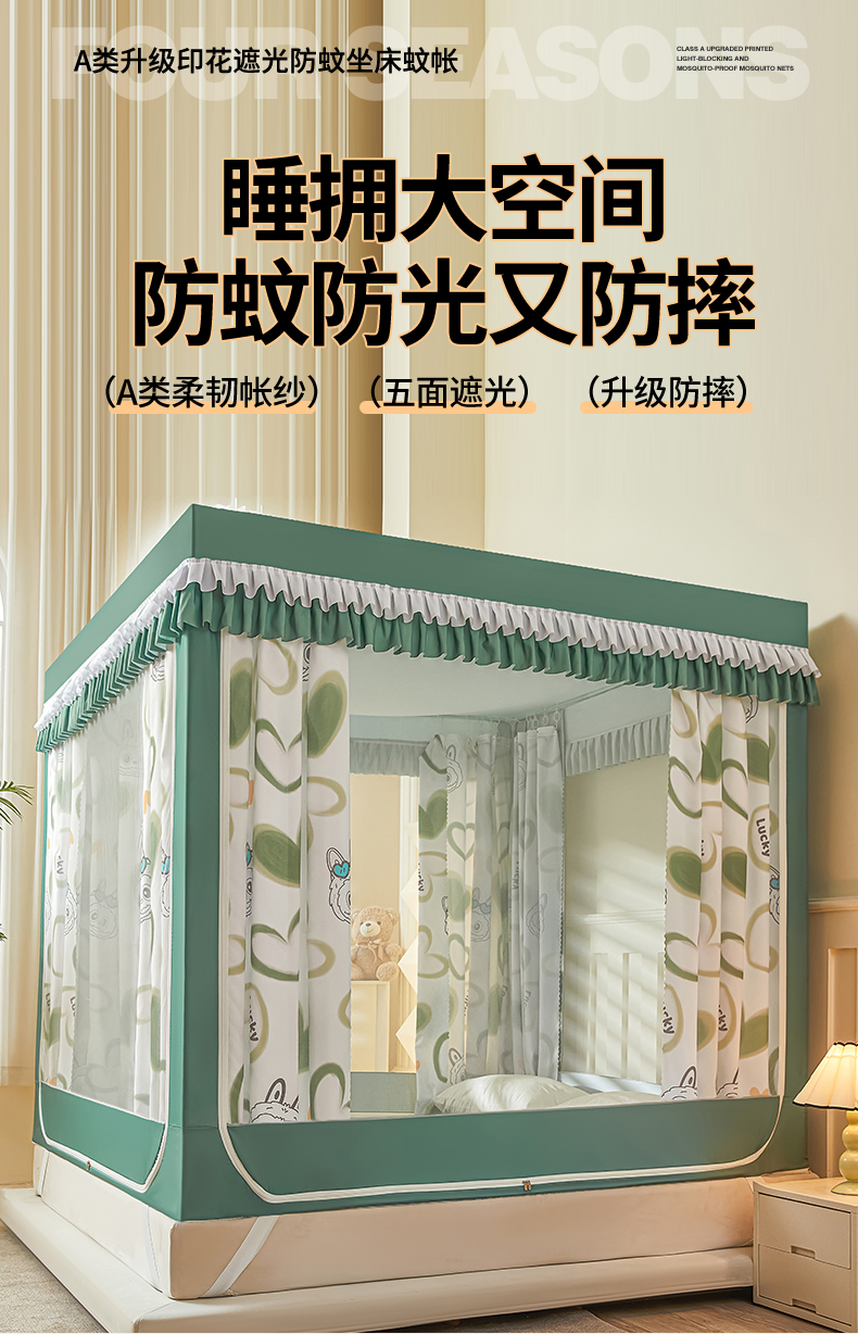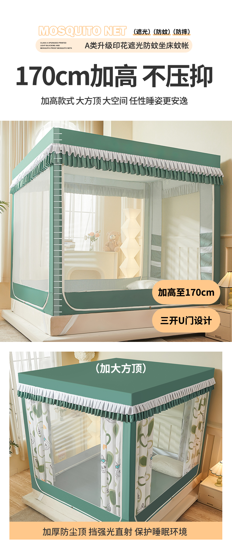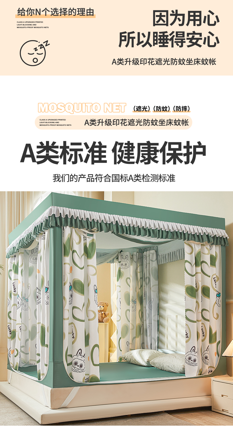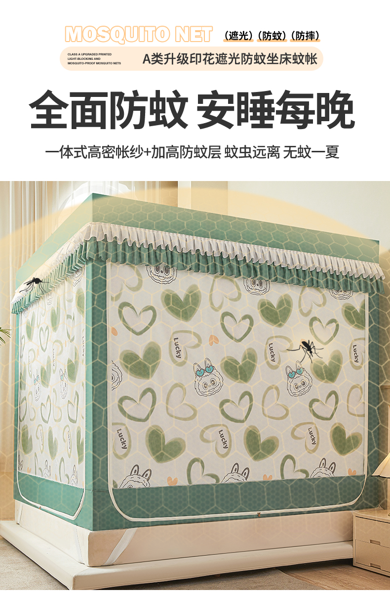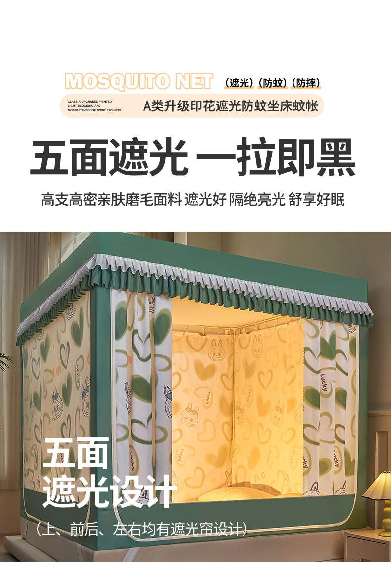 2025新款2520大版数码印花植绒环保五面强遮光学生蚊帐