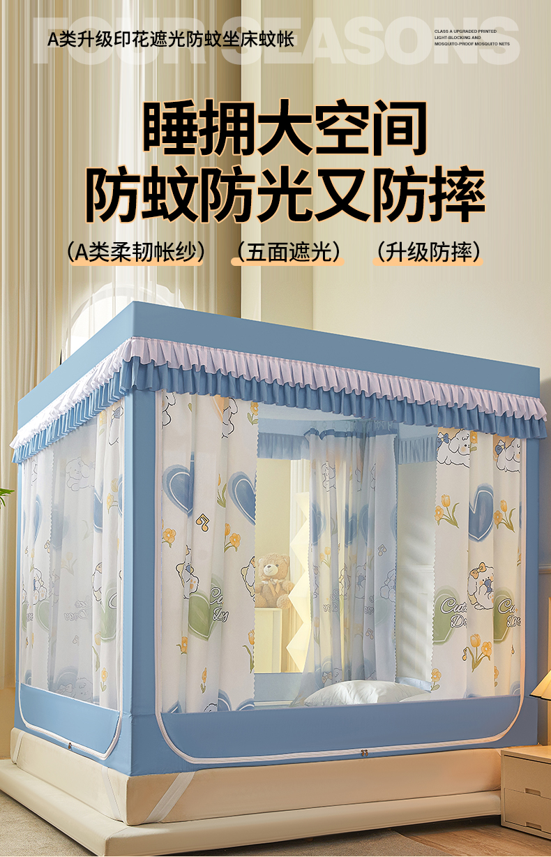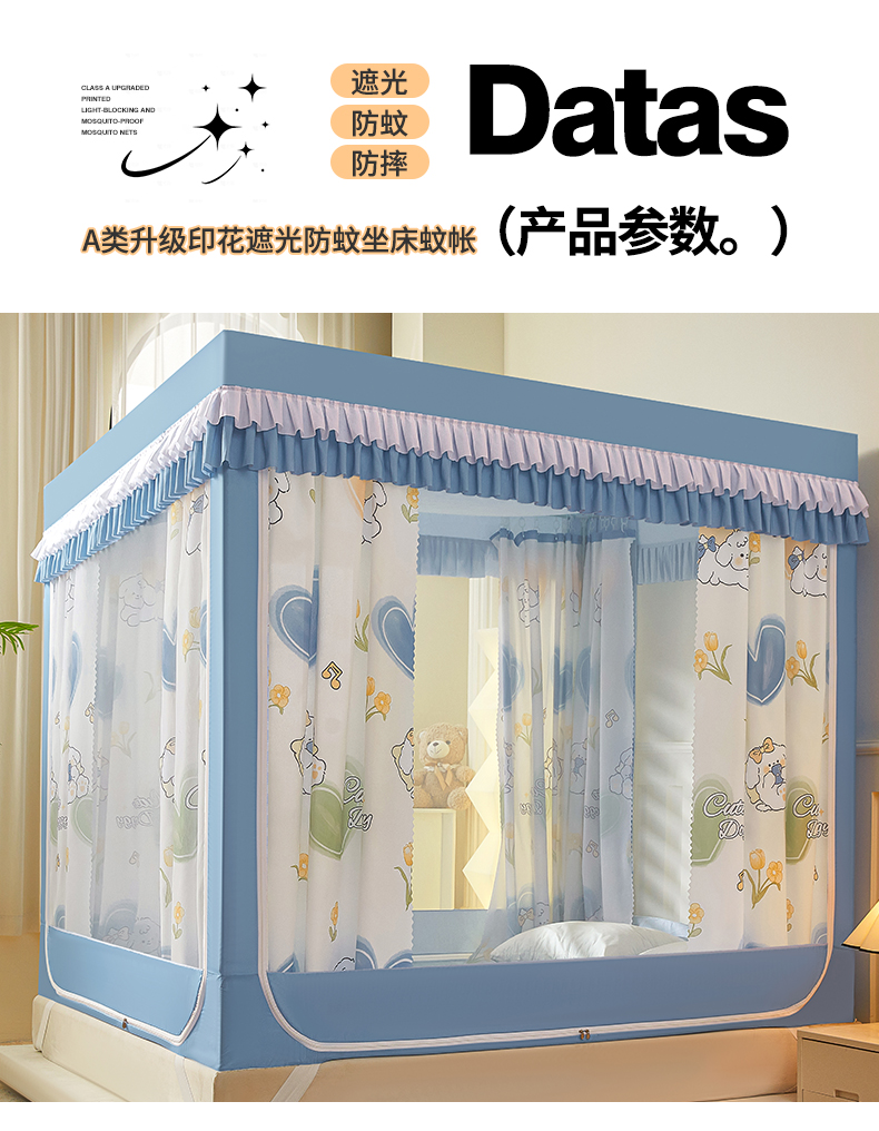 2024新款2501专版印花遮光帘防摔坐床蚊帐