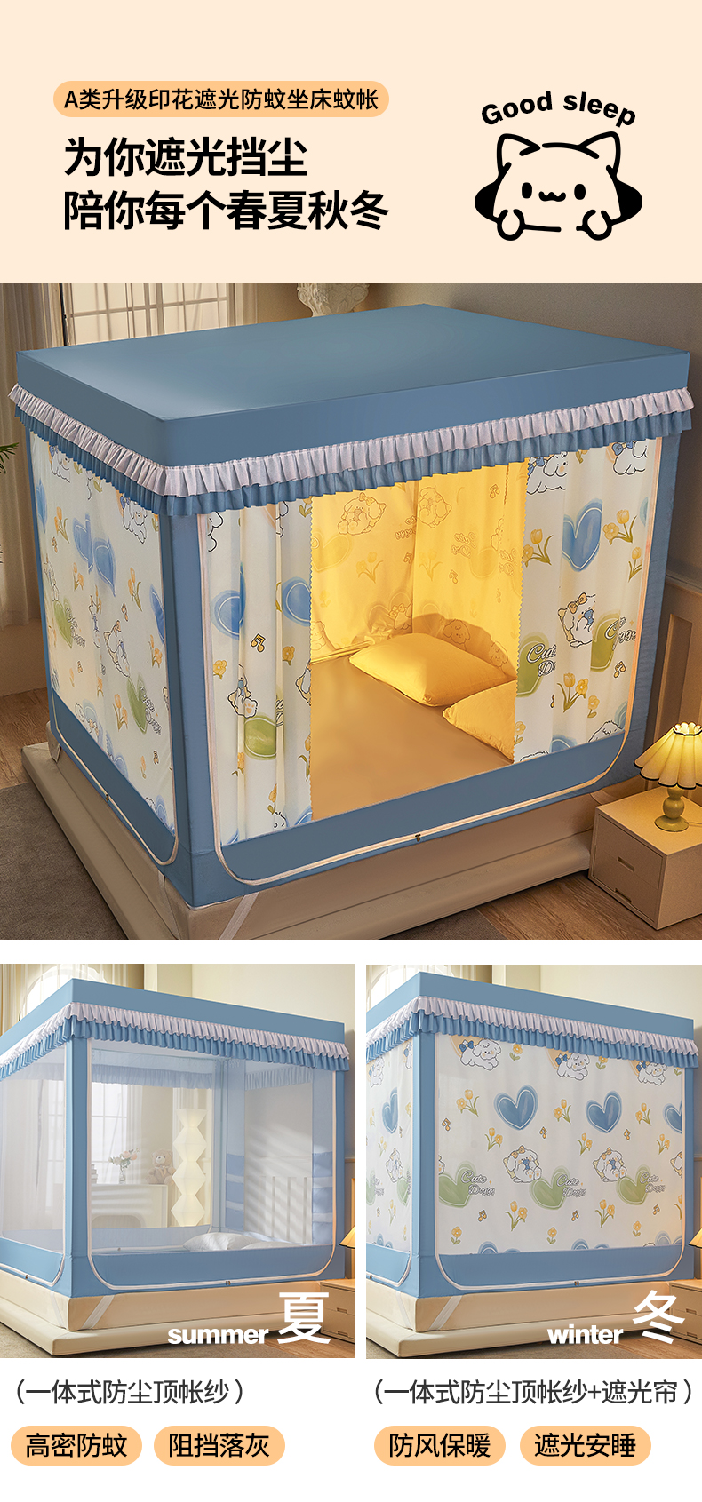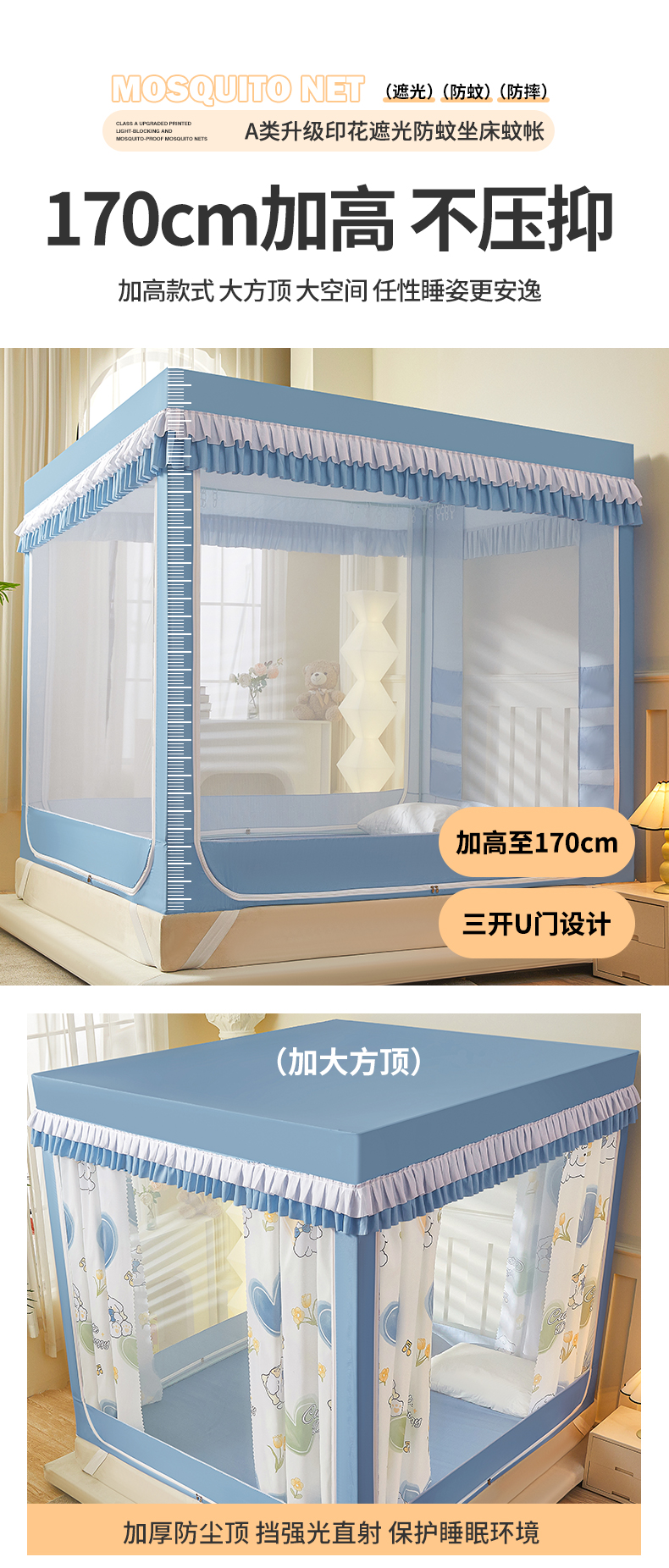 2023新款2315多开门涂层强遮光学生蚊帐
