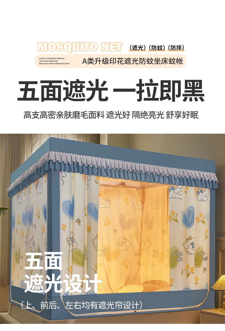 2025新款2520大版数码印花植绒环保五面强遮光学生蚊帐