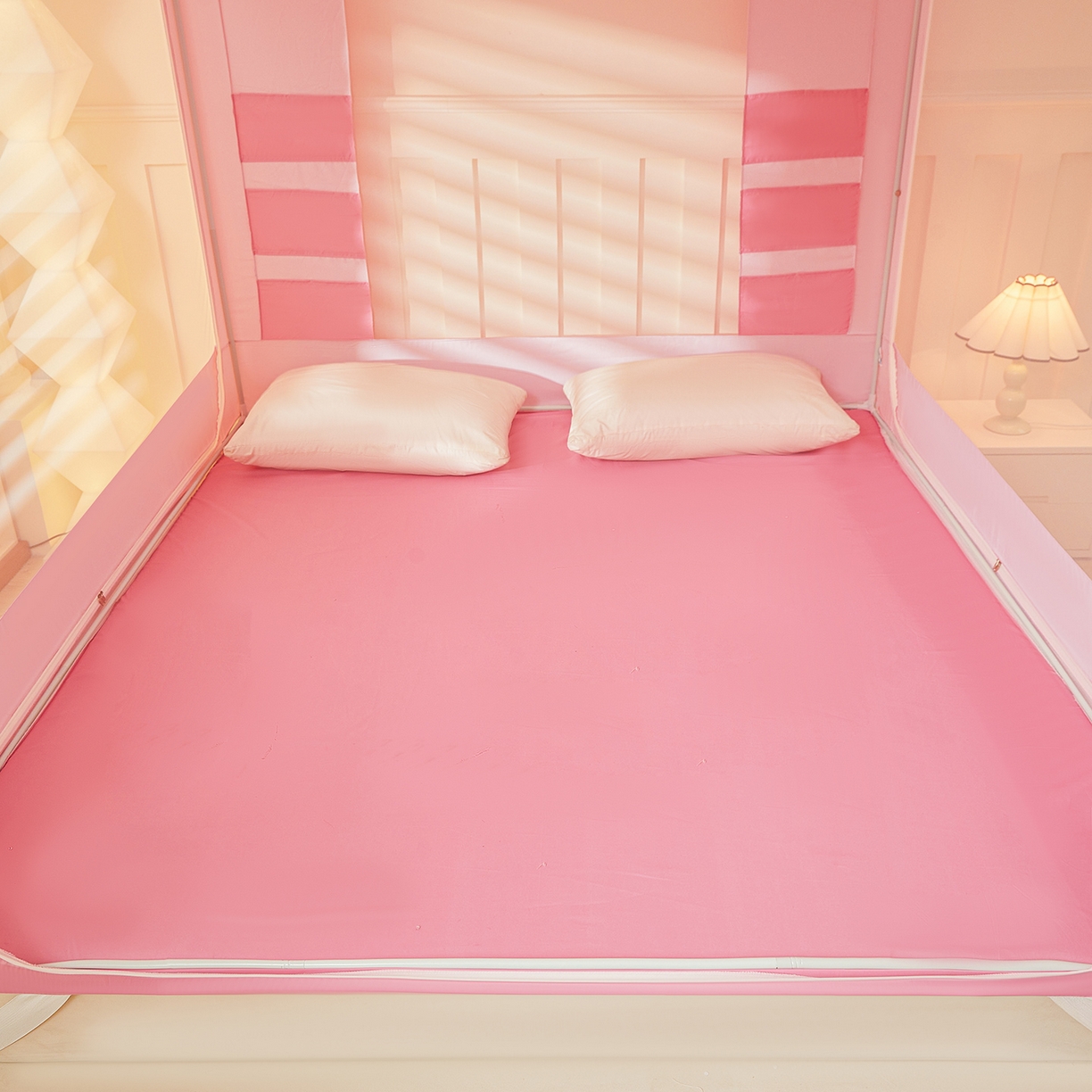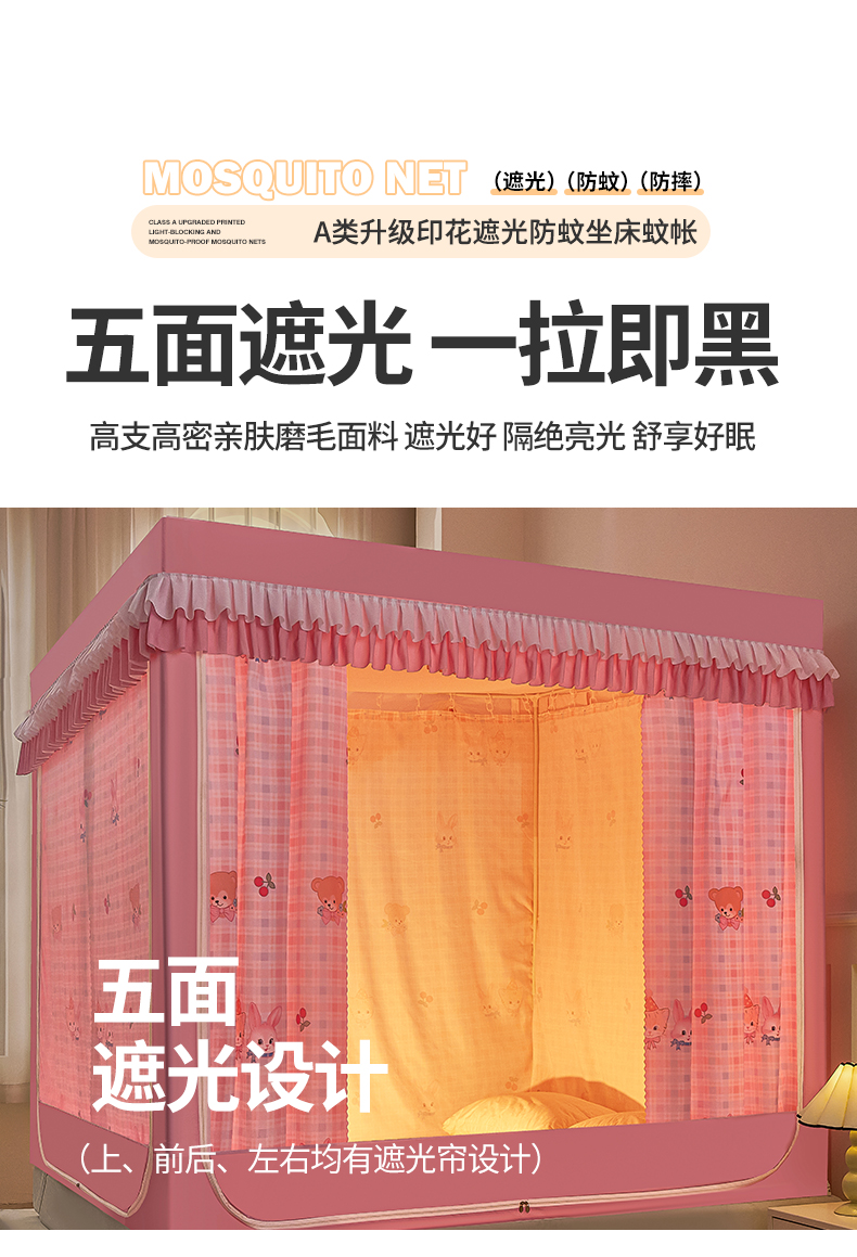 2025新款2602四季款纯色遮光帘坐床蚊帐全底回底双排储物袋