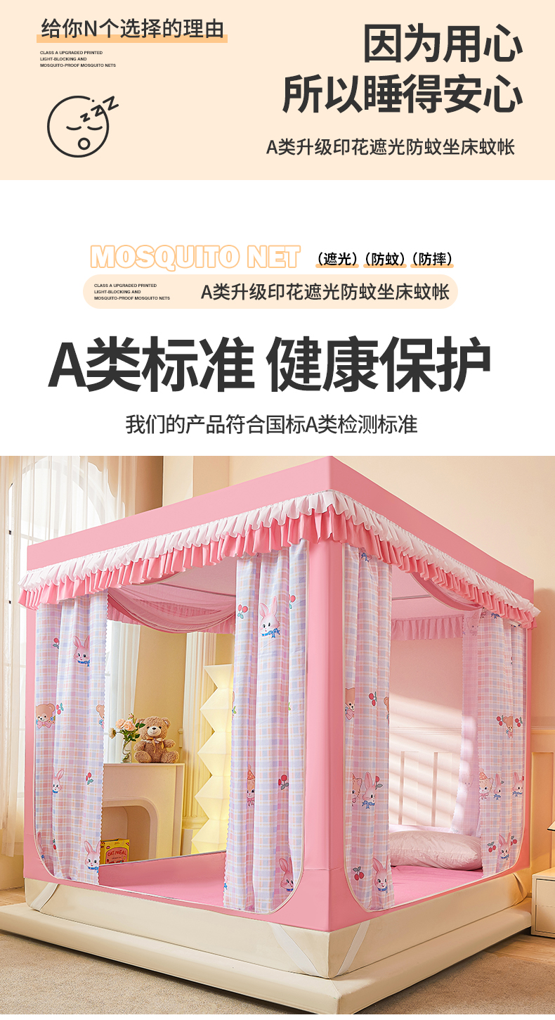 2025新款2520大版数码印花植绒环保五面强遮光学生蚊帐
