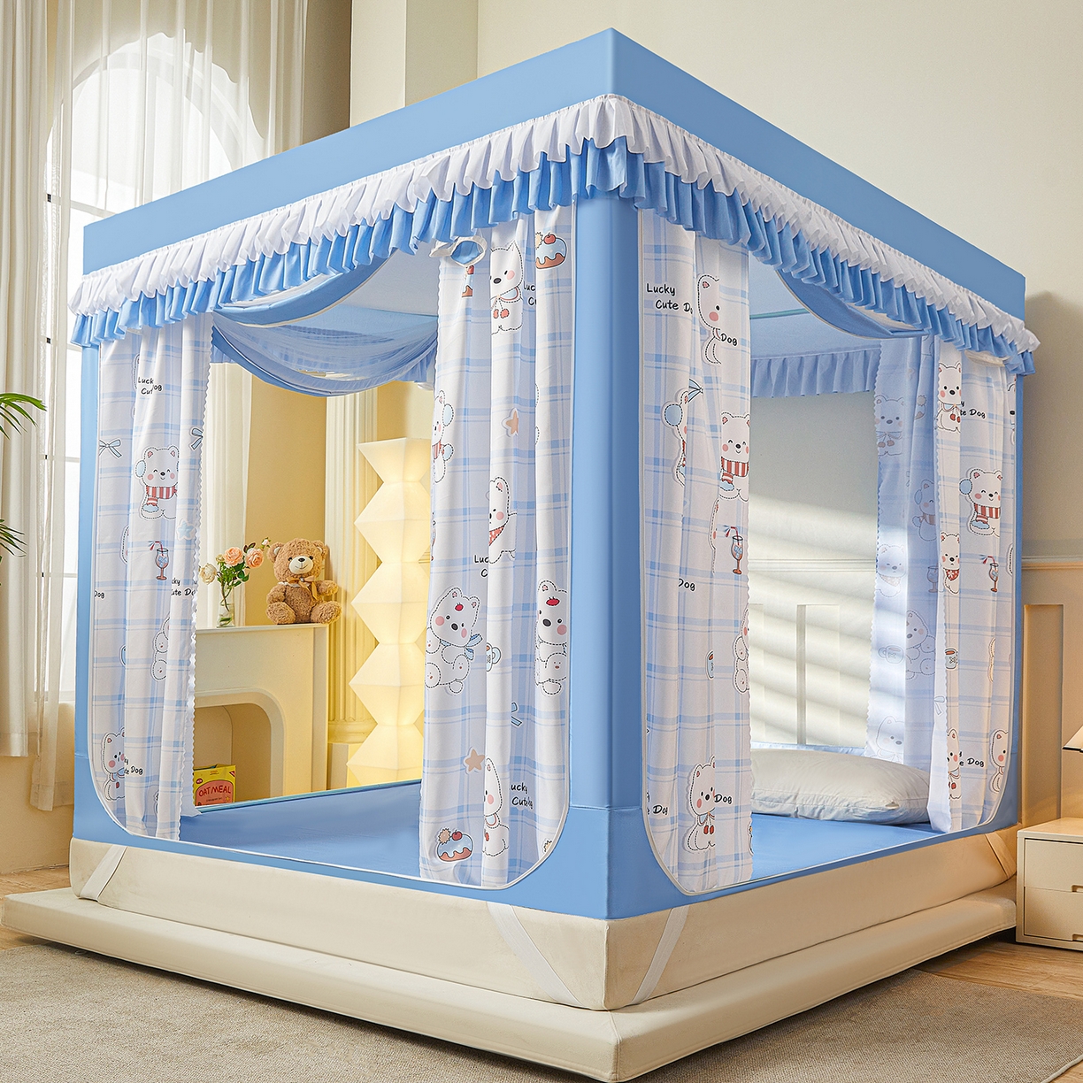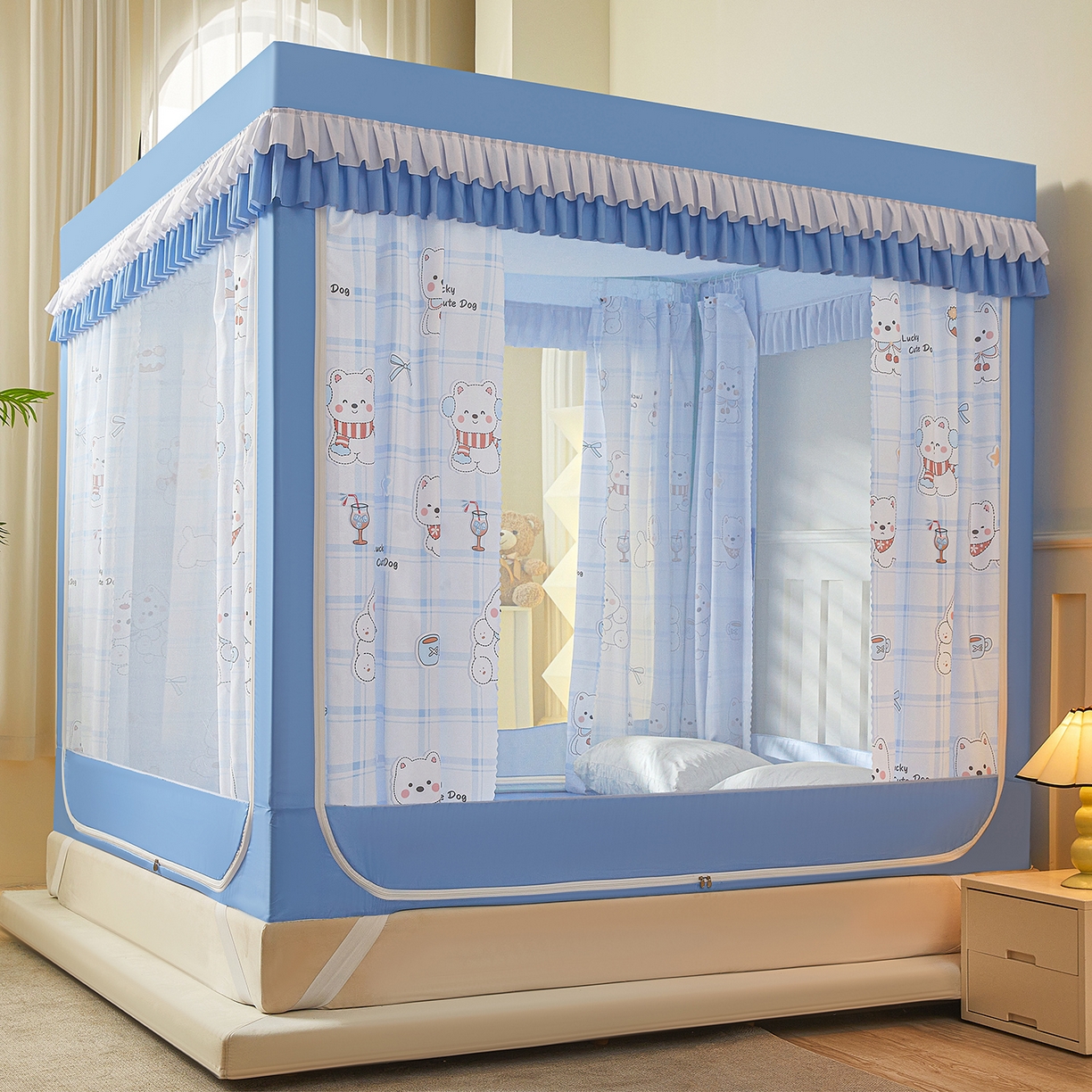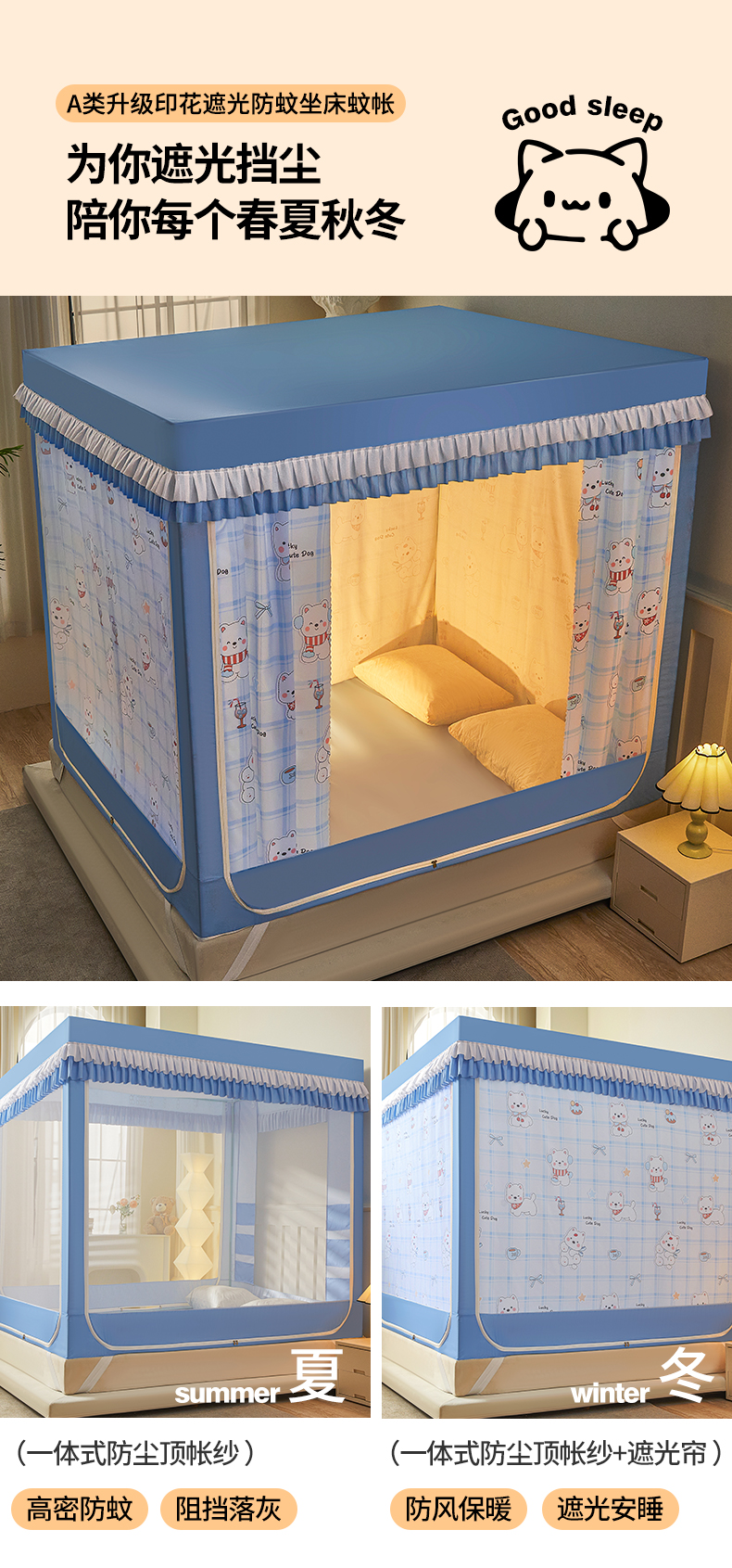2025新款2601四季款印花遮光帘坐床蚊帐全底回底双排储物袋