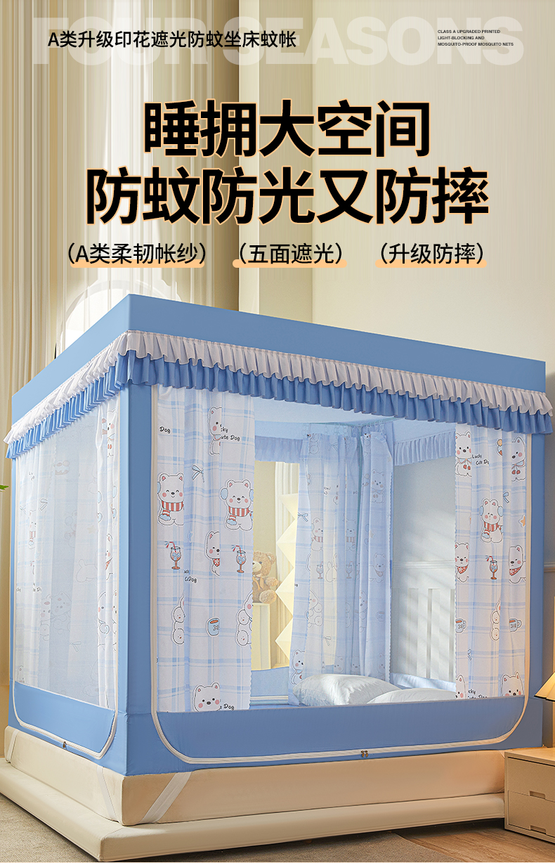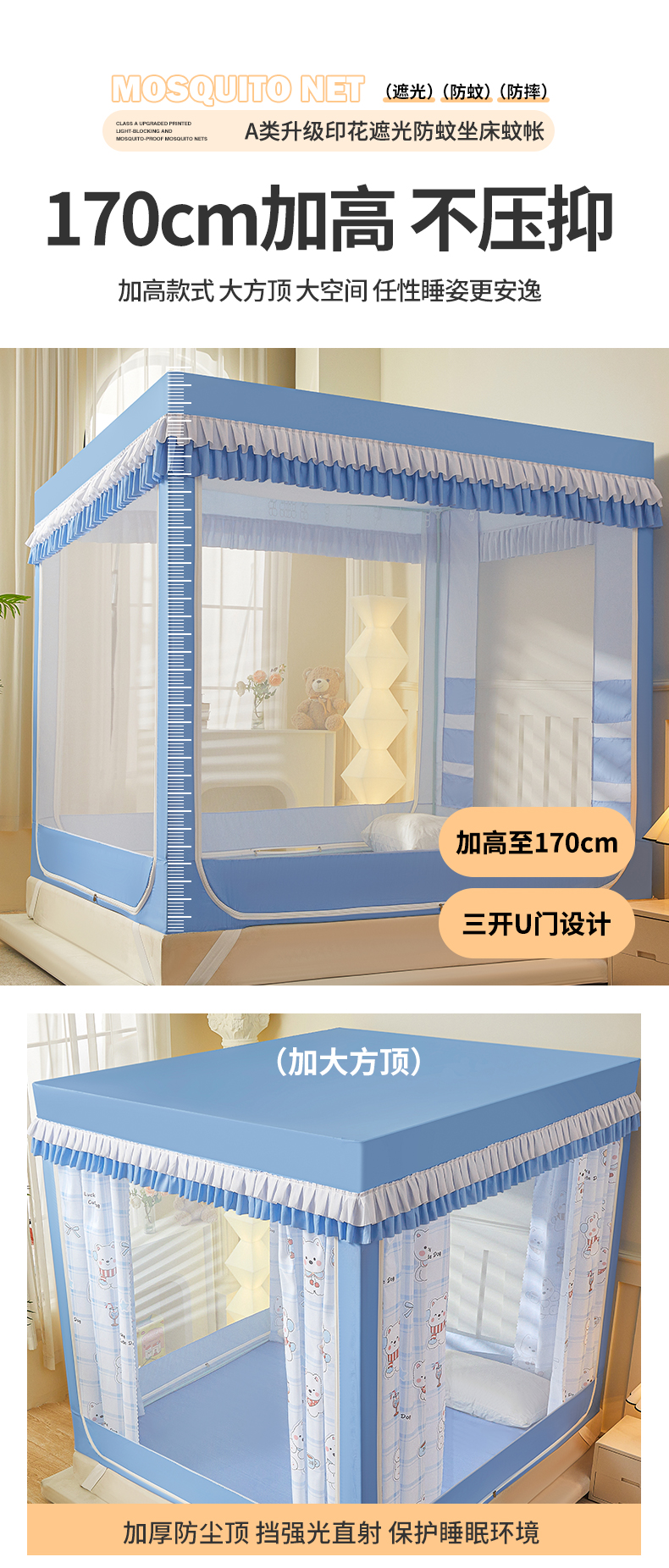 2024新款2501专版印花遮光帘防摔坐床蚊帐