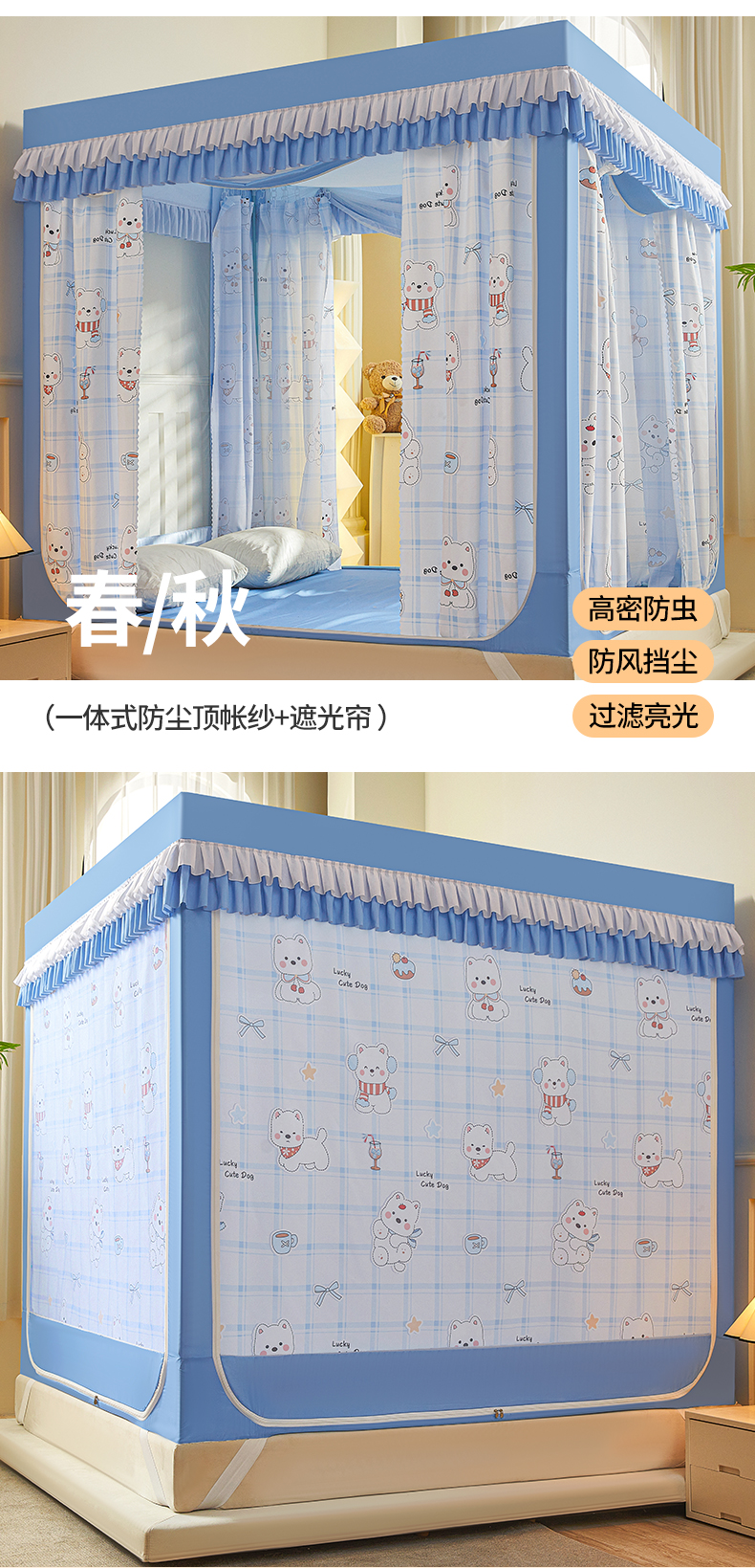 2024新款2415纳米环保加厚强遮光小清新学生蚊帐(自带靠墙帘)