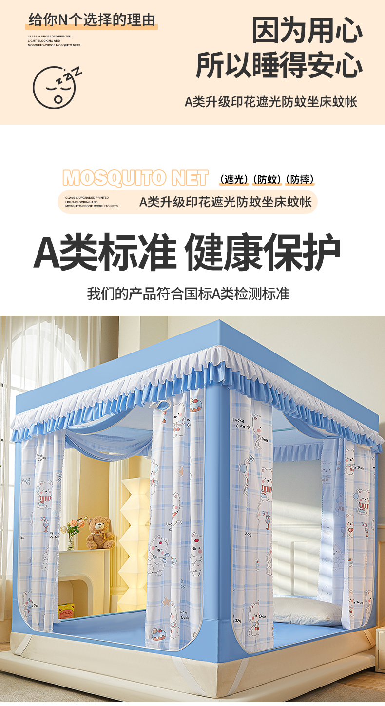 2025新款2520大版数码印花植绒环保五面强遮光学生蚊帐