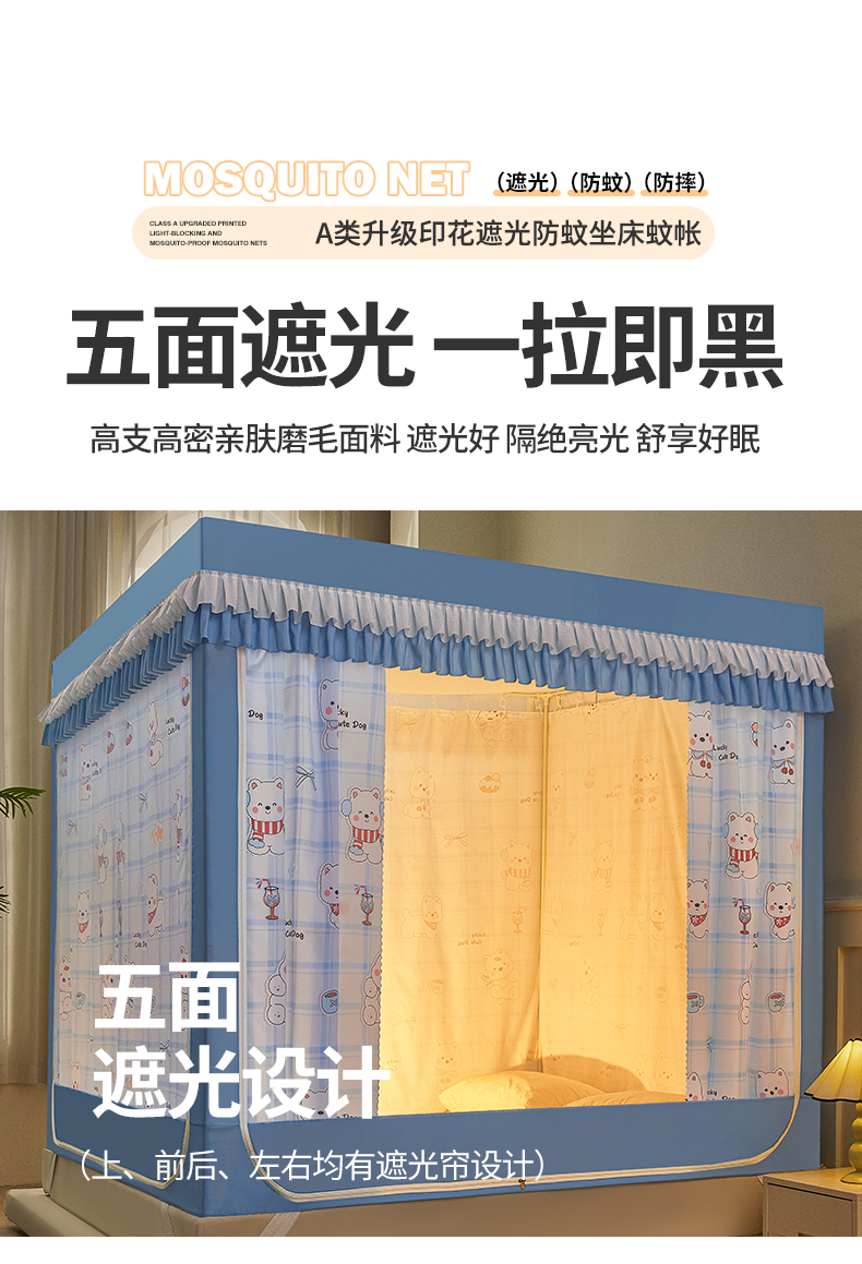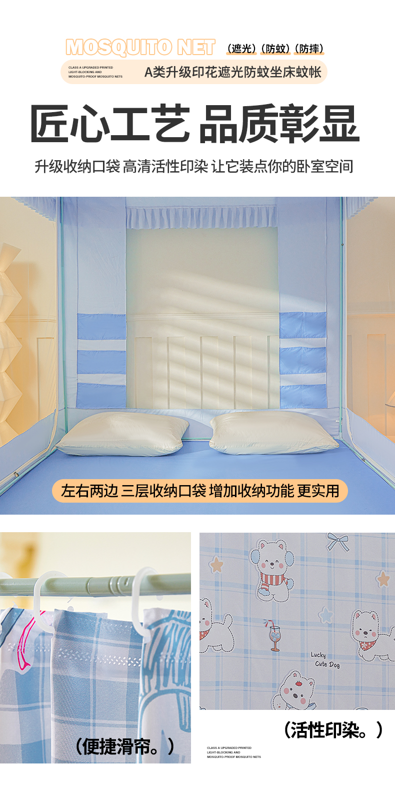 2024新款2416纳米环保加厚强遮光大版数码印花学生蚊帐(自带靠墙帘)
