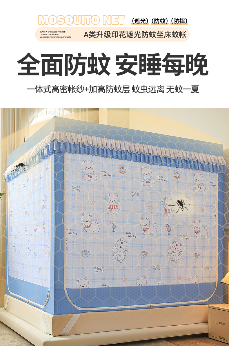 迪凡保罗蚊帐 2025新款2601四季款印花遮光帘坐床蚊帐全底回底双排储物袋 萌萌西高地-带床帘