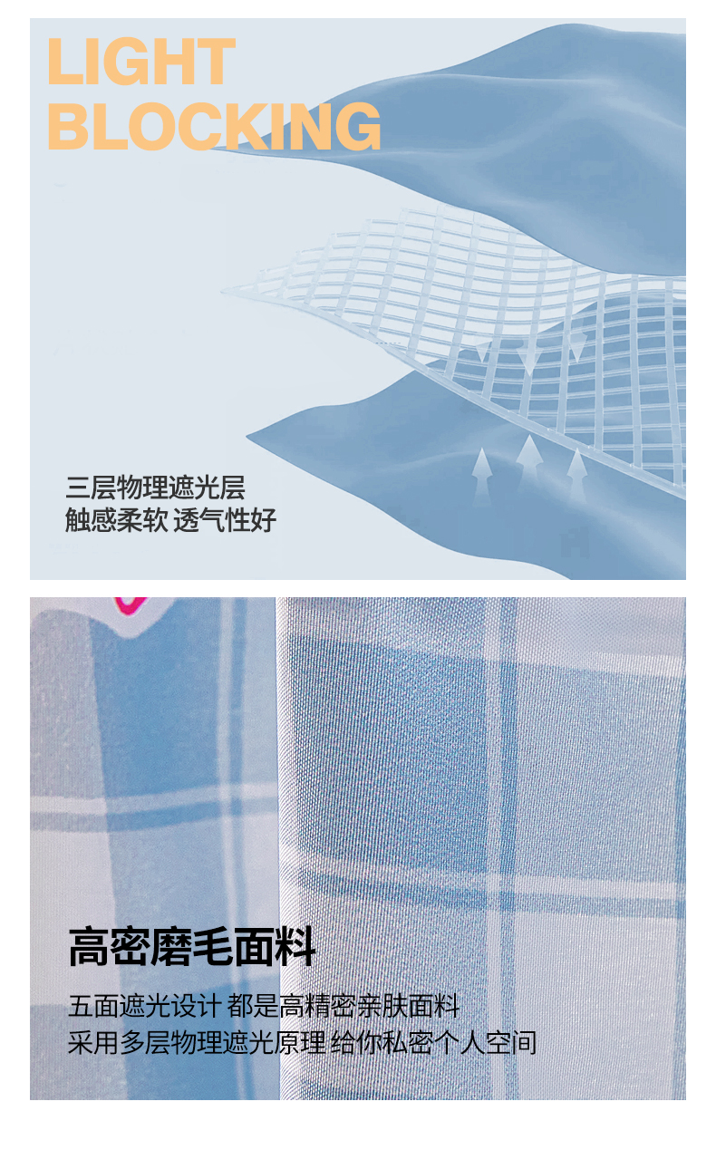 2025新款2519款纯色植绒环保五面强遮光双轨铝合金学生导轨蚊帐