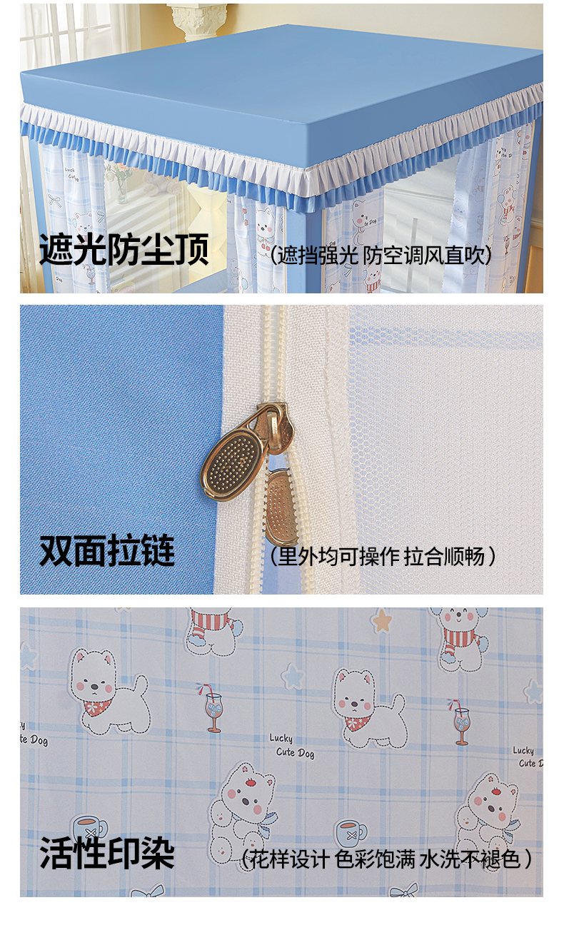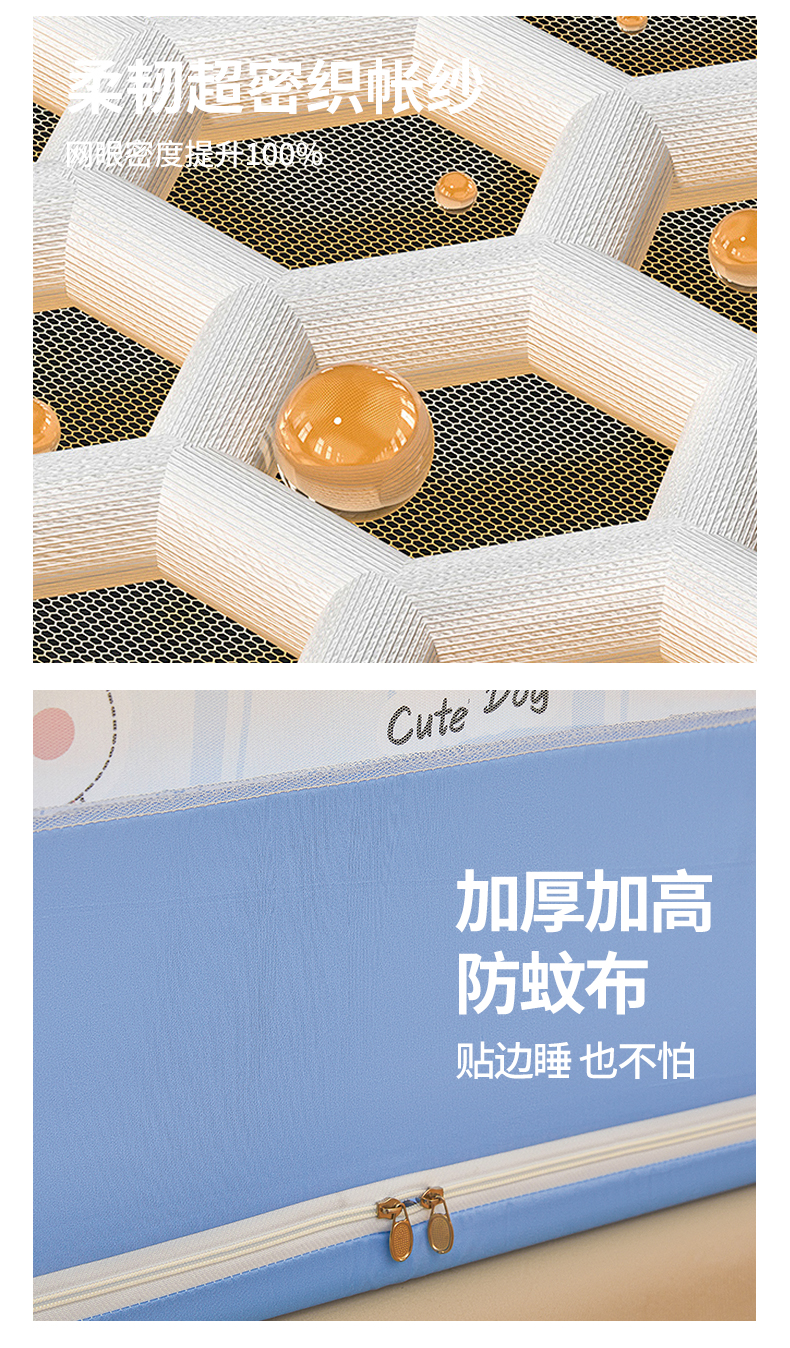 2025新款2502款美人狗烫画围栏级防摔外穿杆坐床蚊帐-场景二