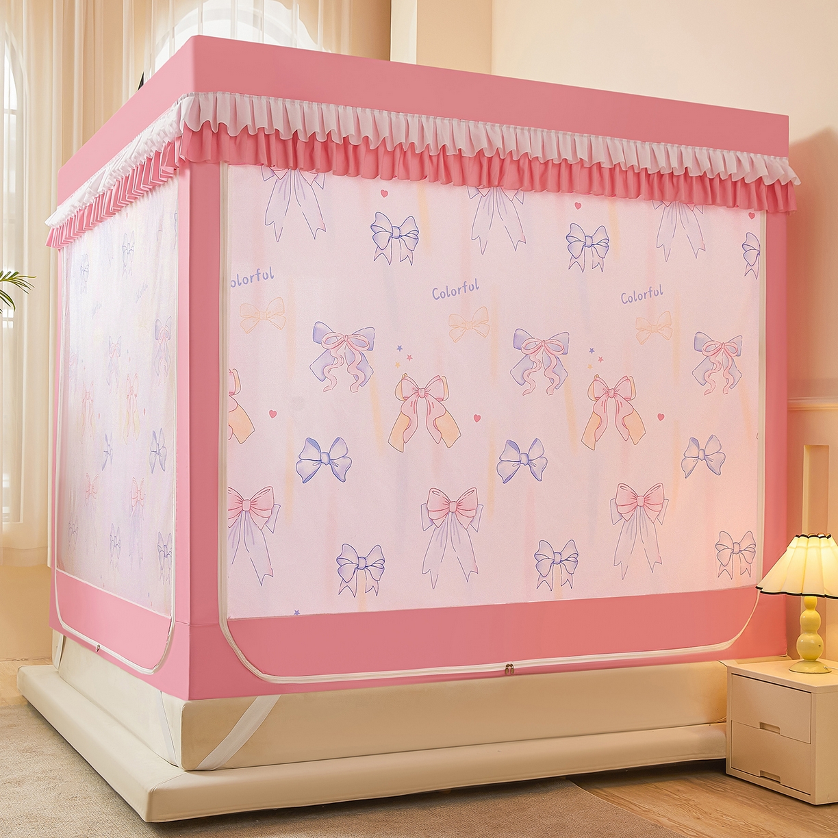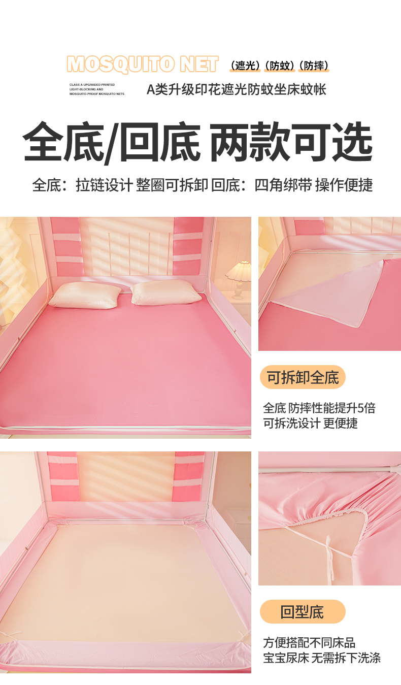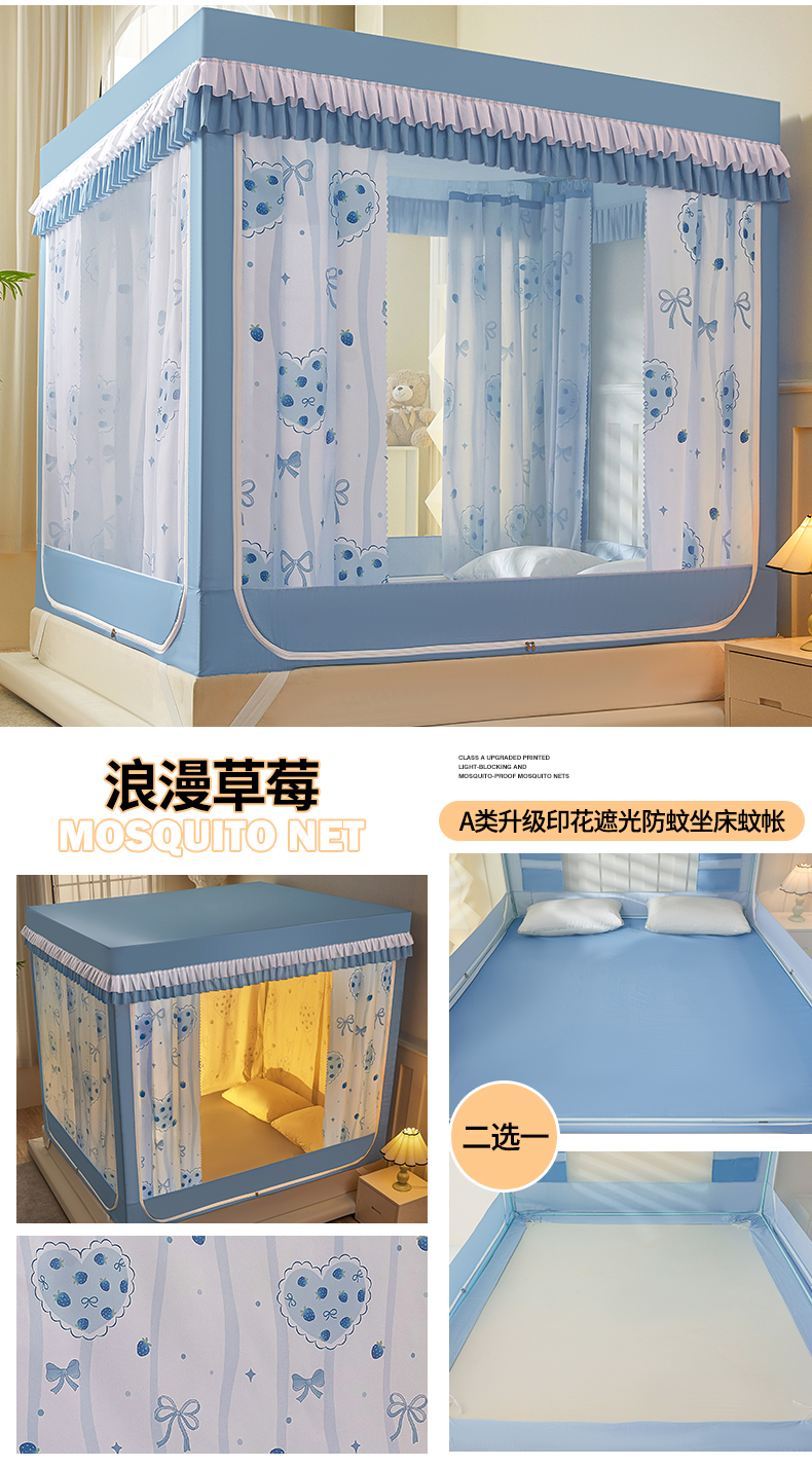 2025新款2601四季款印花遮光帘坐床蚊帐全底回底双排储物袋