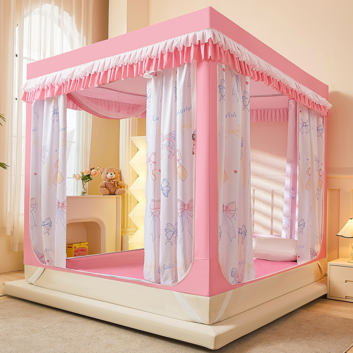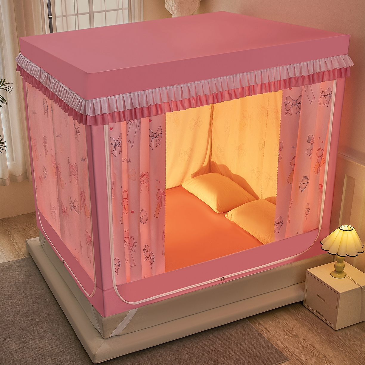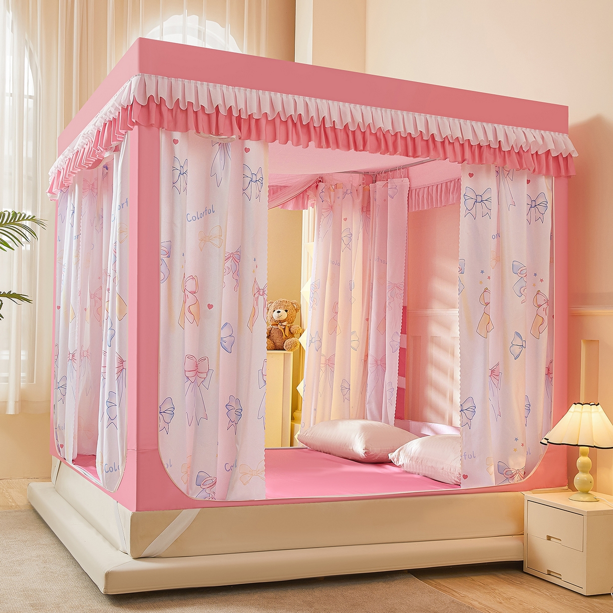 2025新款2601四季款印花遮光帘坐床蚊帐全底回底双排储物袋