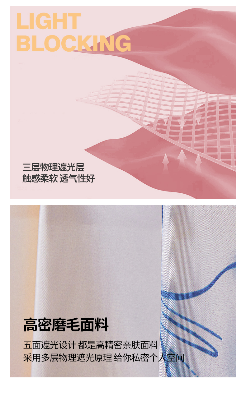 2024新款140克加厚强遮光面料2413大版数码印花遮光学生蚊帐