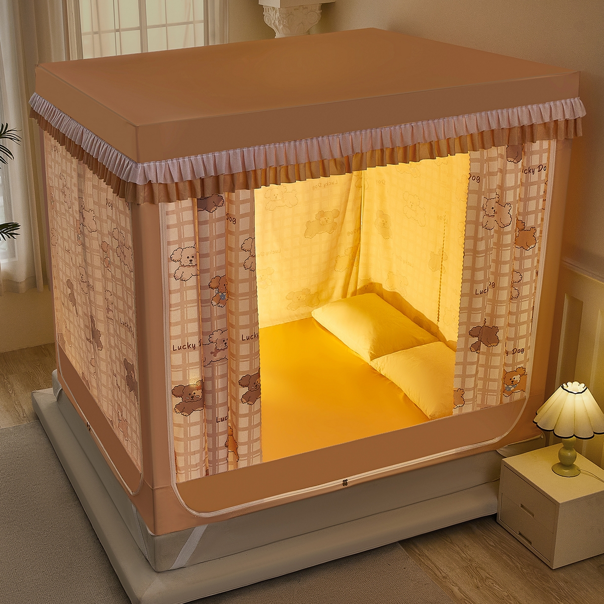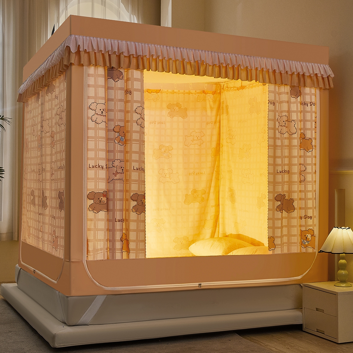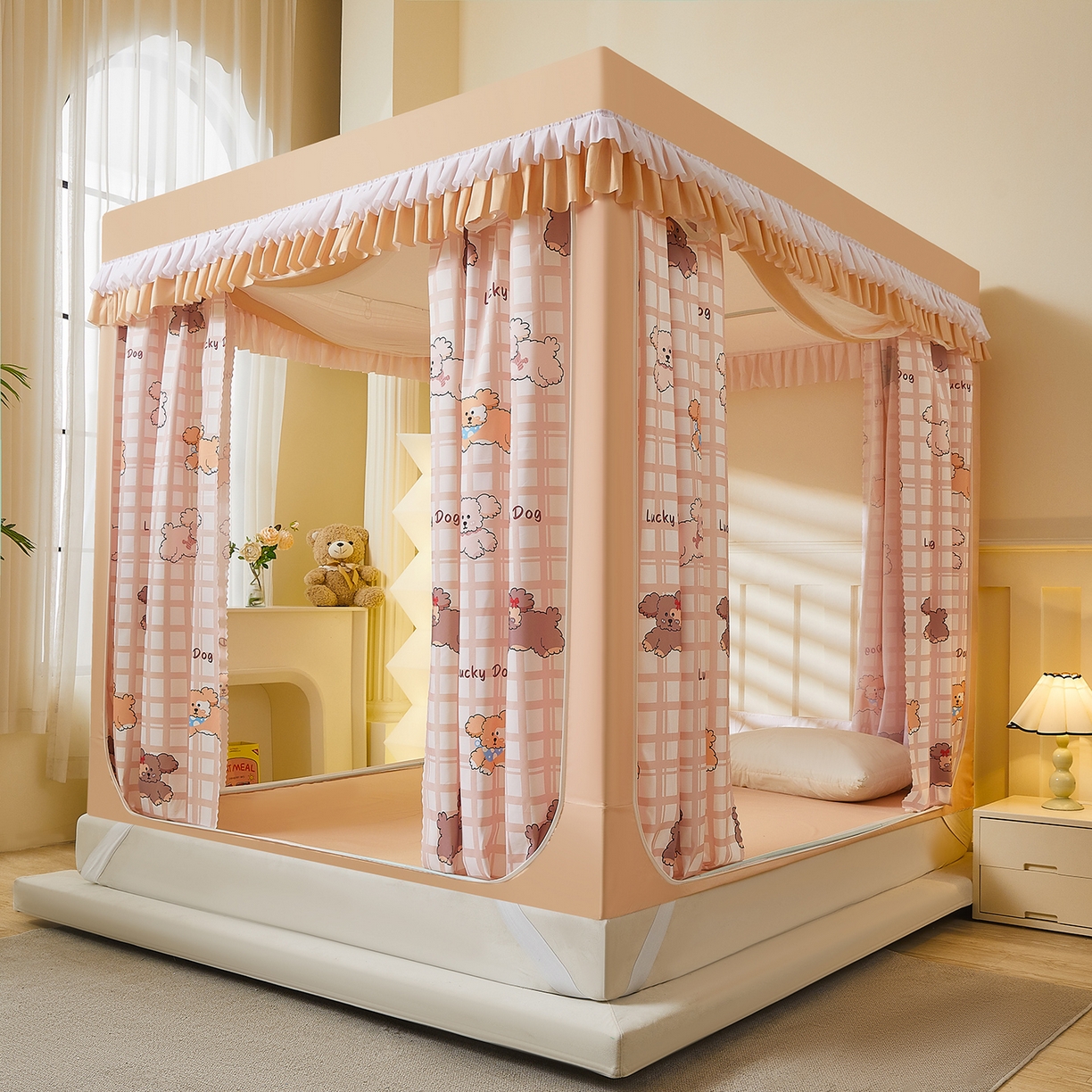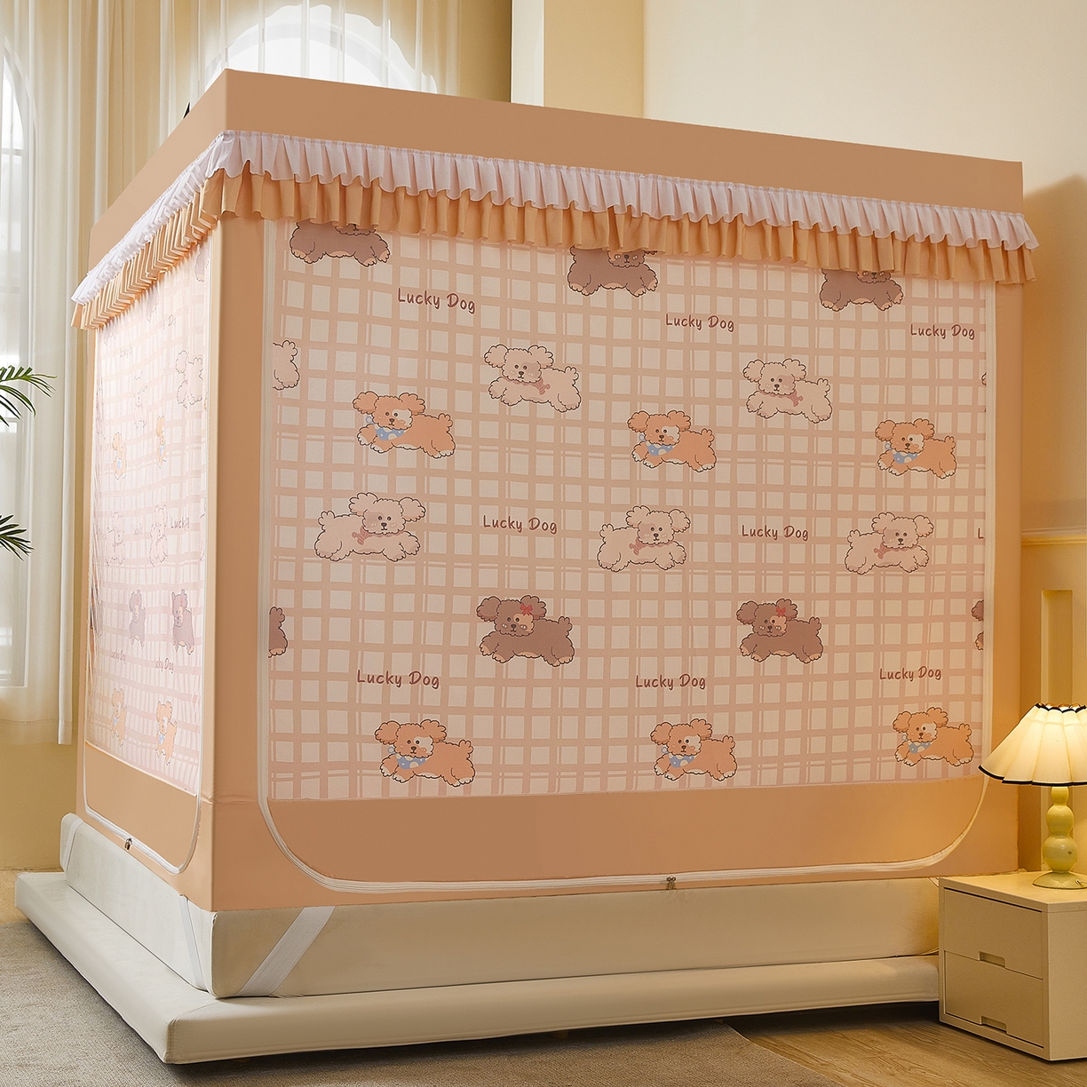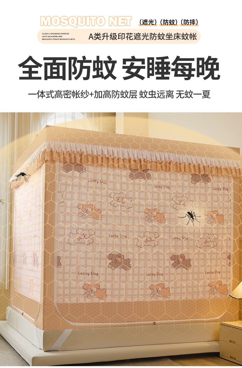 迪凡保罗蚊帐 2025新款2601四季款印花遮光帘坐床蚊帐全底回底双排储物袋 俏皮狗狗-带床帘