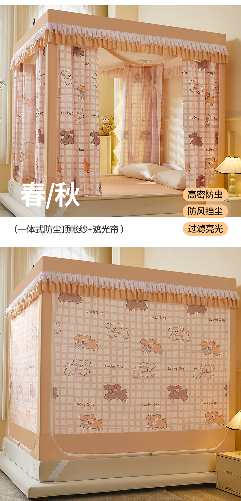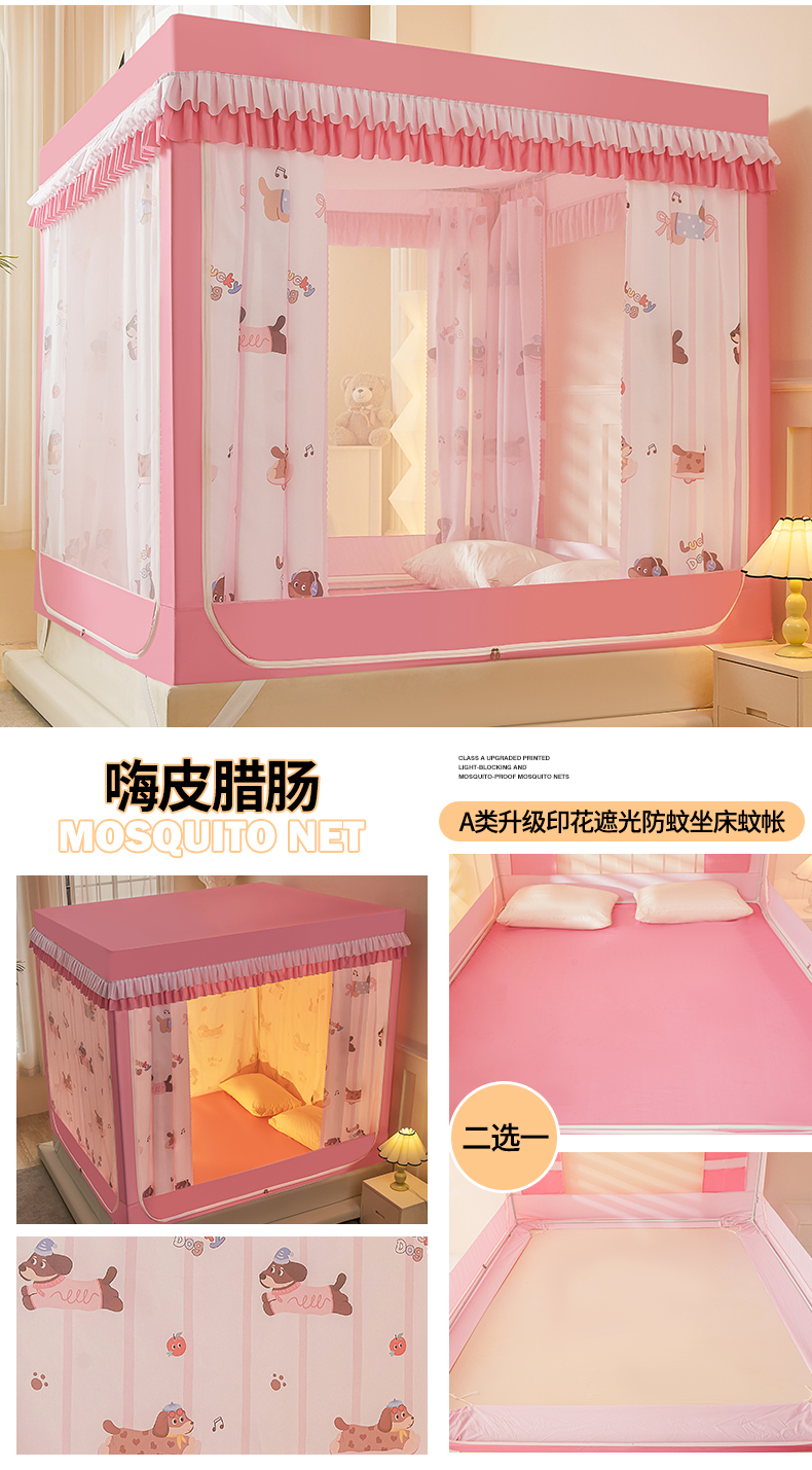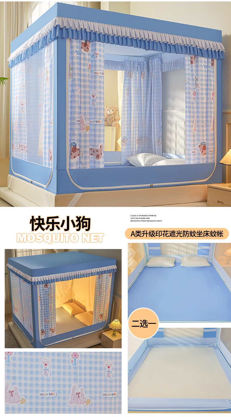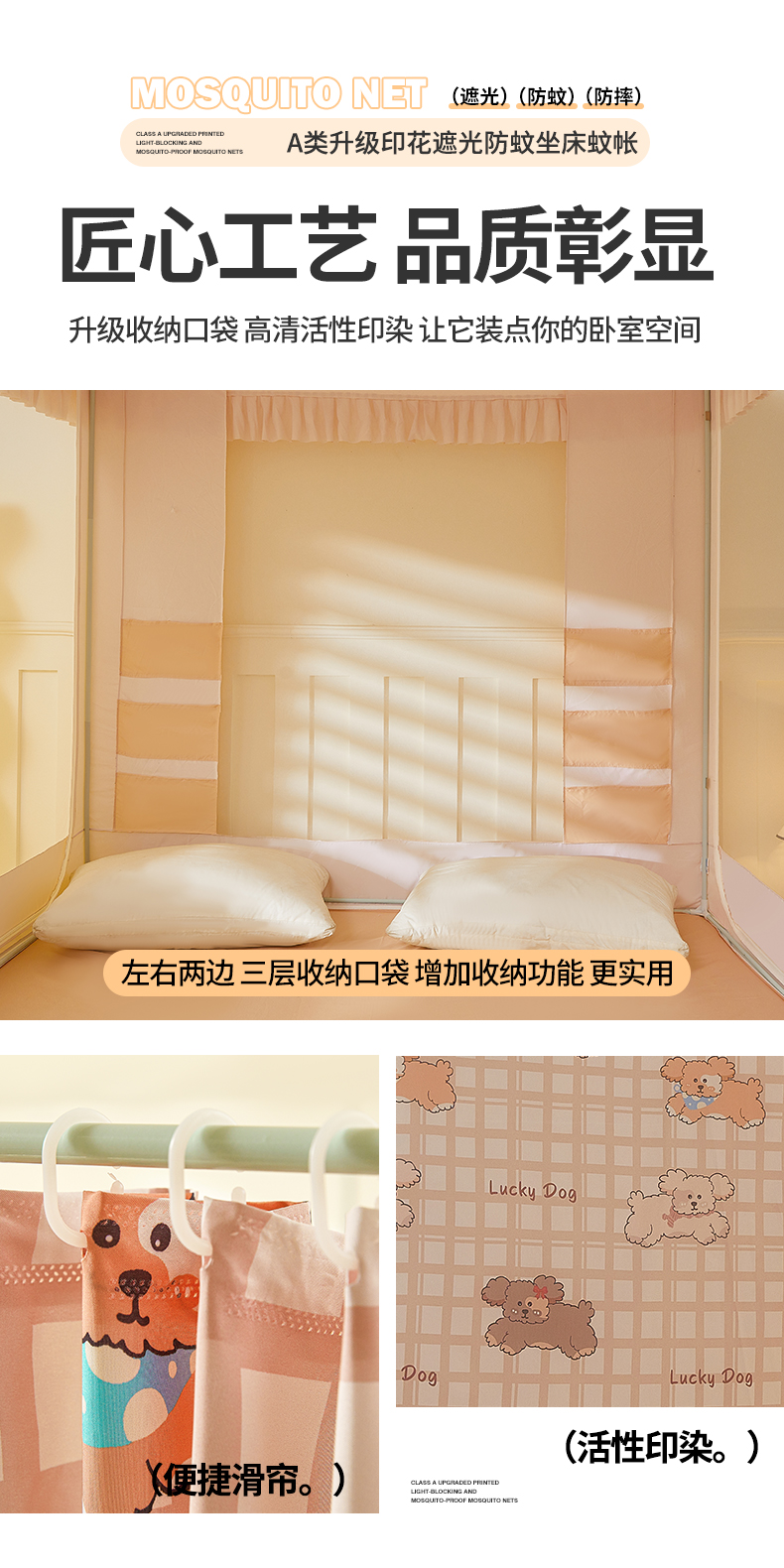 > 迪凡保罗蚊帐 2025新款2601四季款印花遮光帘坐床蚊帐全底回底双排储物袋 俏皮狗狗-带床帘