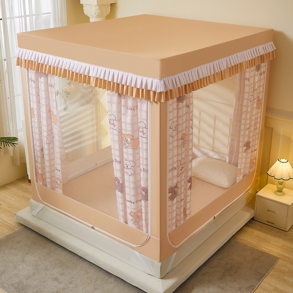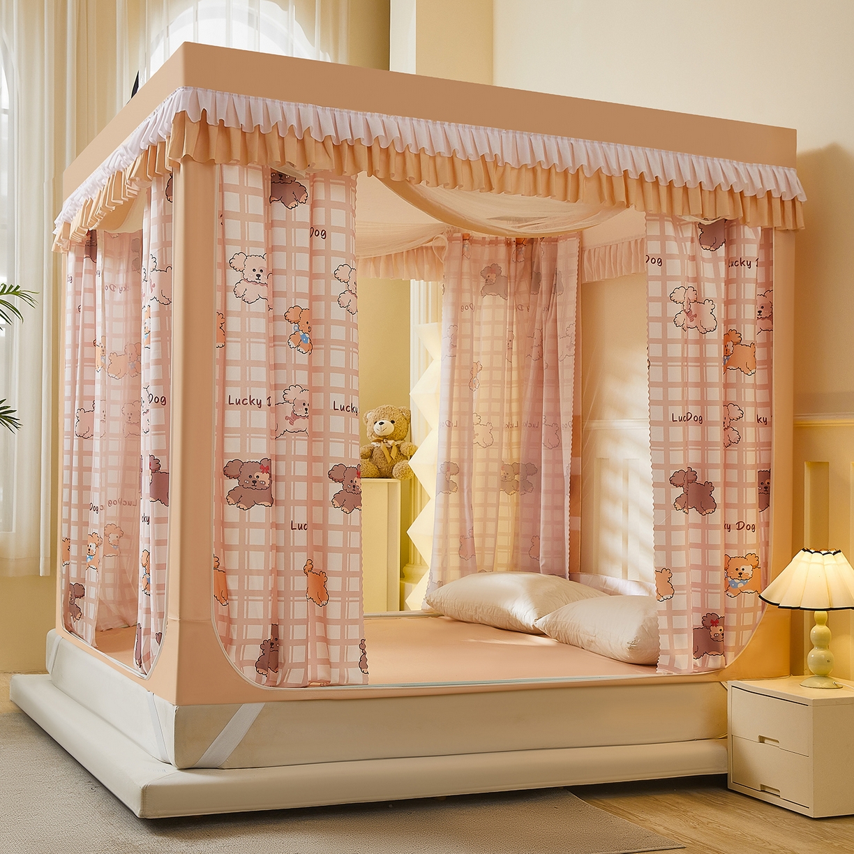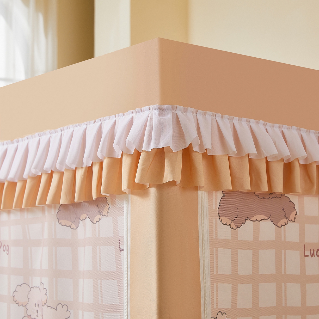 > 迪凡保罗蚊帐 2025新款2601四季款印花遮光帘坐床蚊帐全底回底双排储物袋 俏皮狗狗-带床帘