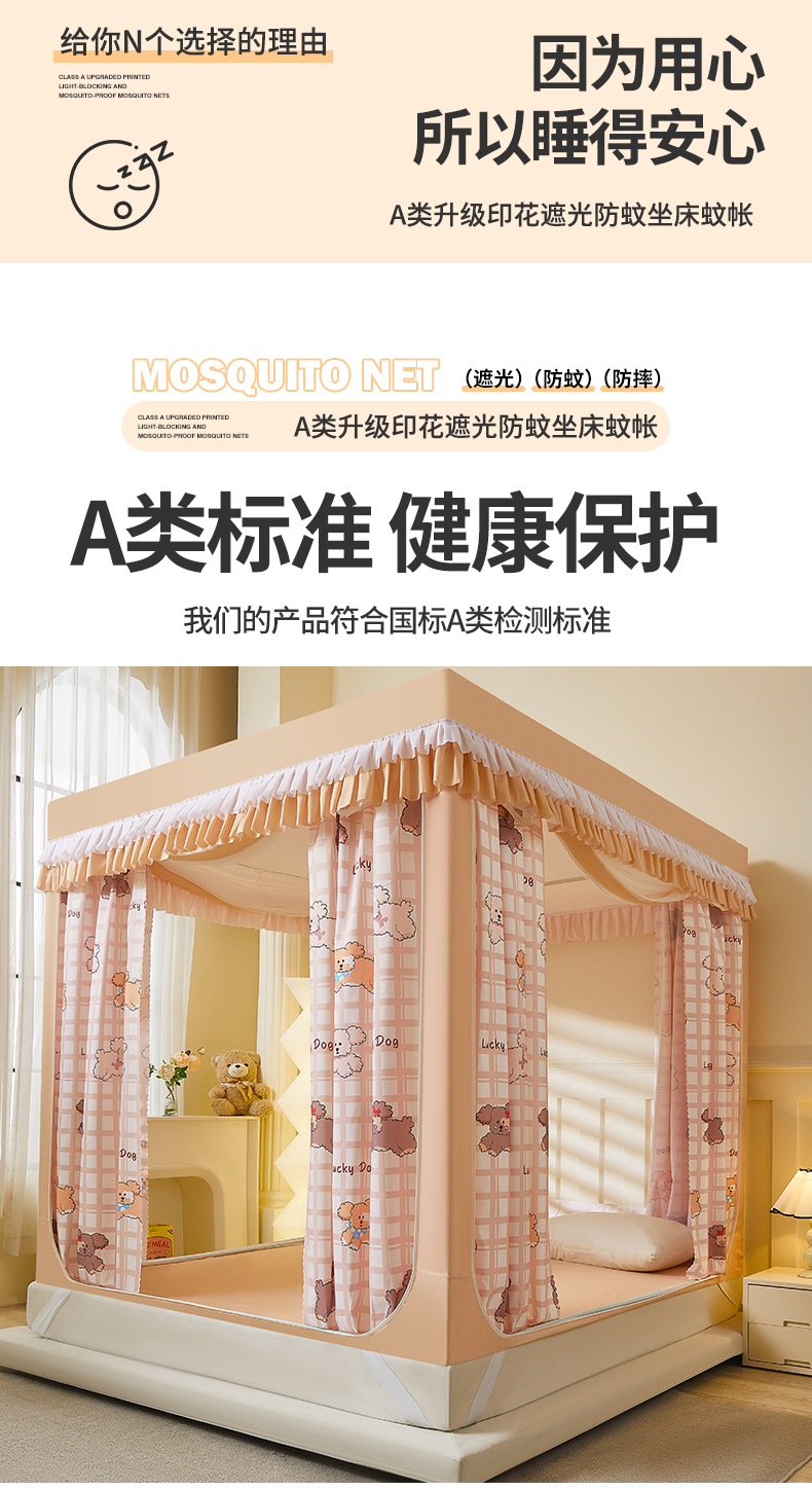 2025新款2520大版数码印花植绒环保五面强遮光学生蚊帐