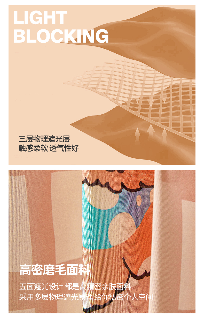 2024新款140克加厚强遮光面料2413大版数码印花遮光学生蚊帐