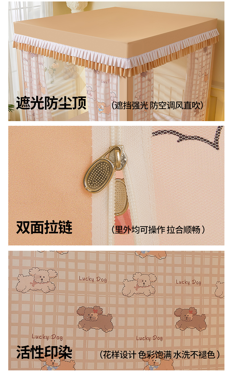 2025新款2502款美人狗烫画围栏级防摔外穿杆坐床蚊帐-场景二