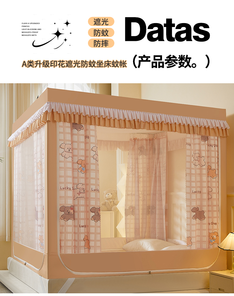 2024新款2501专版印花遮光帘防摔坐床蚊帐
