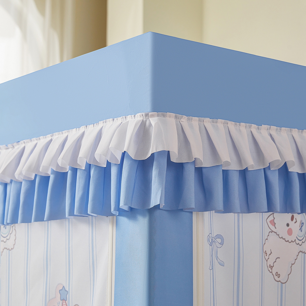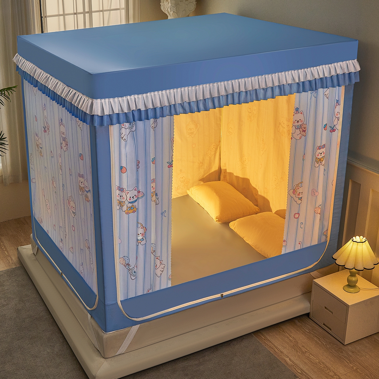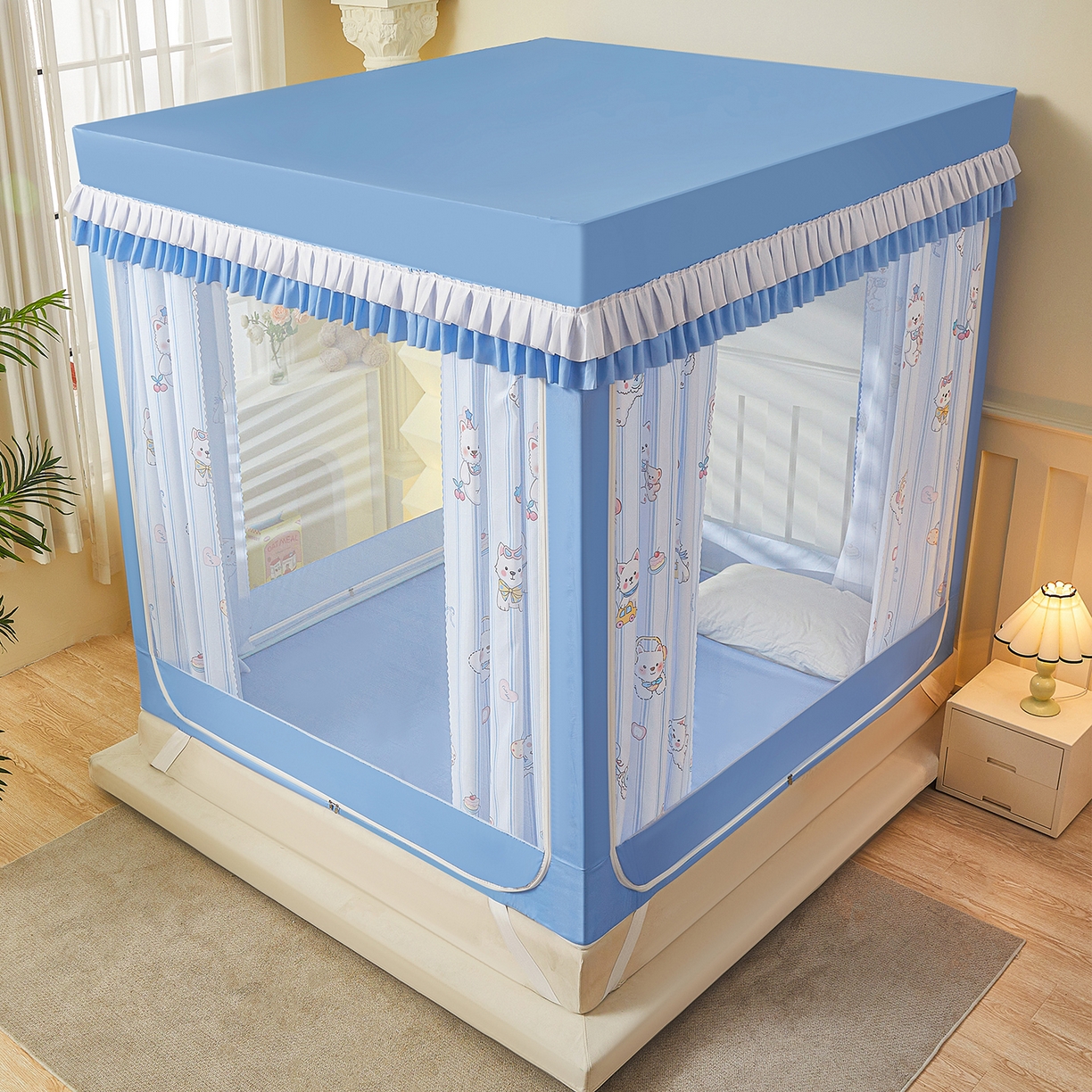 2025新款2502款美人狗烫画围栏级防摔外穿杆坐床蚊帐-场景二