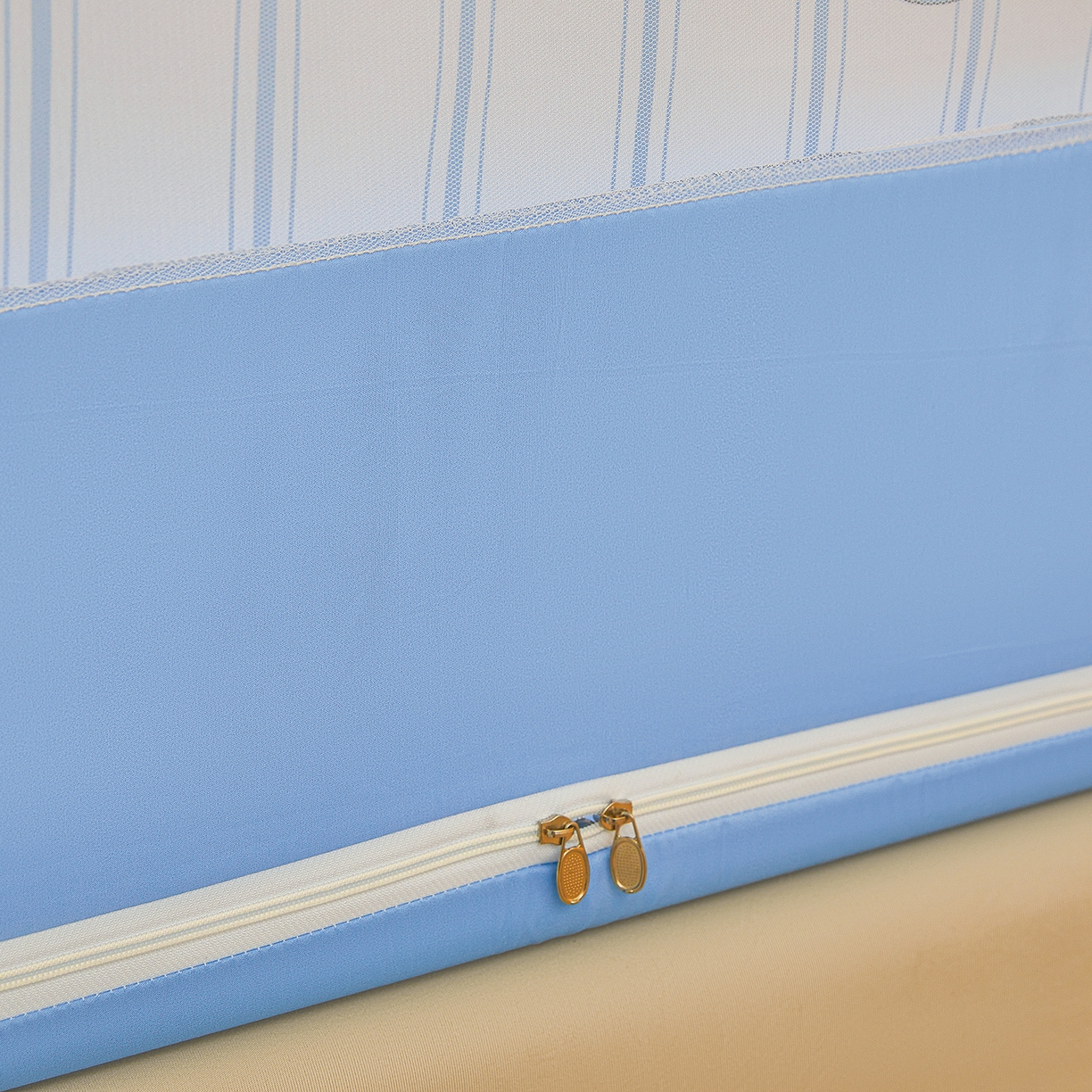 2025新款2602四季款纯色遮光帘坐床蚊帐全底回底双排储物袋