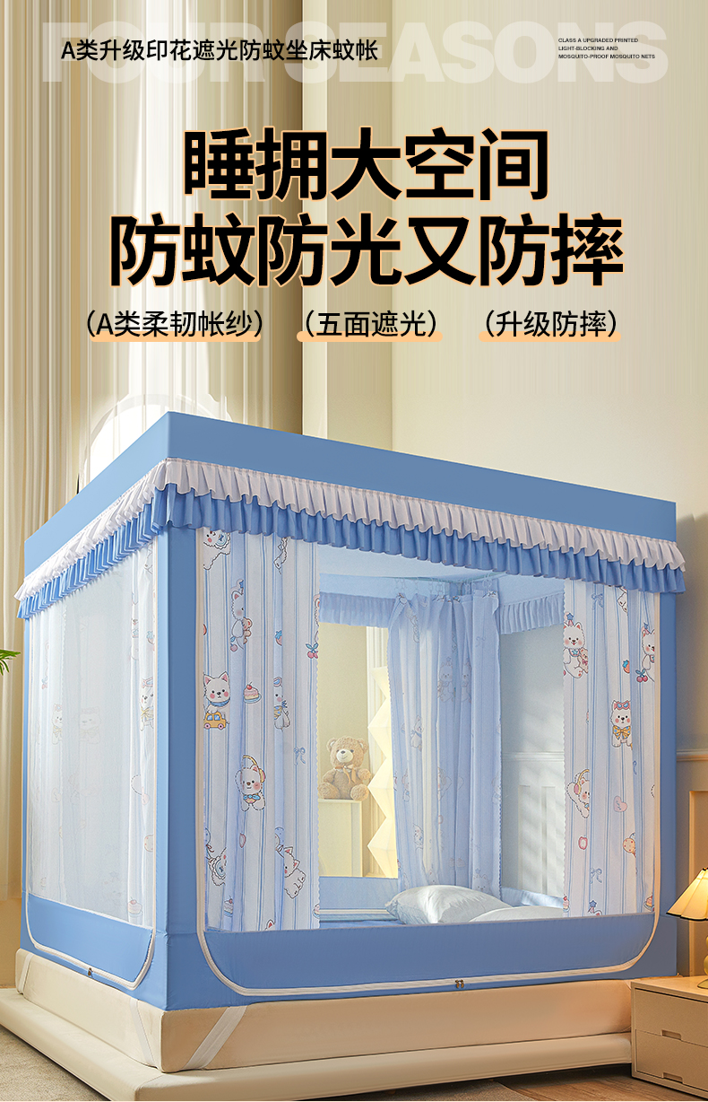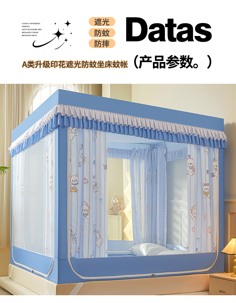 2024新款2501专版印花遮光帘防摔坐床蚊帐