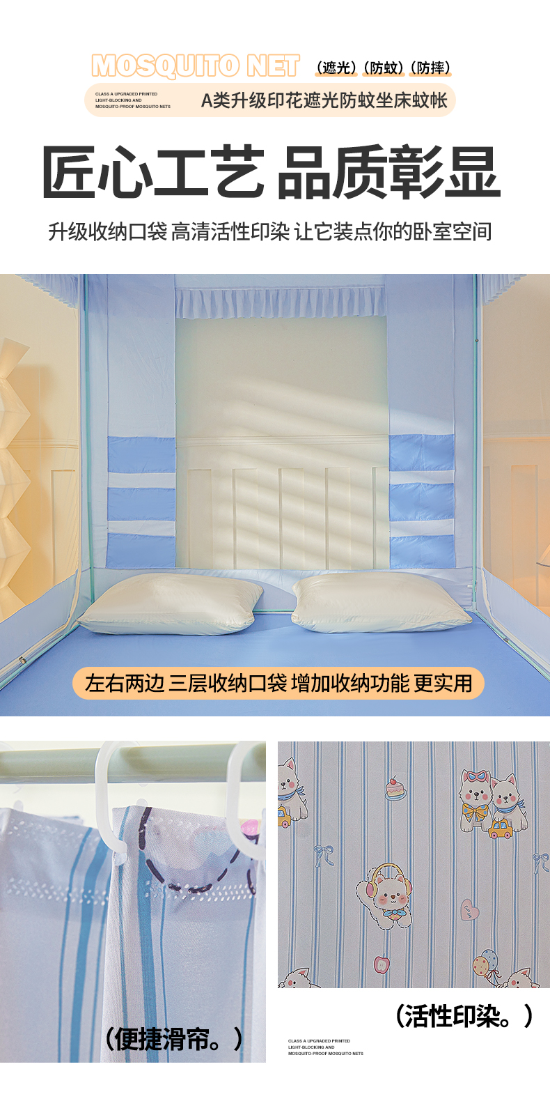 2024新款2407专版印花遮光帘上下铺子母蚊帐