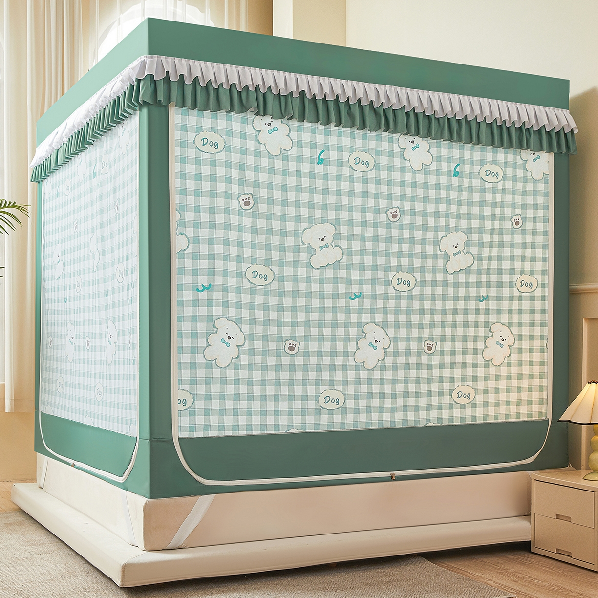 2025新款2603冬季保暖夹棉印花遮光帘蚊帐全底回底双排储物袋